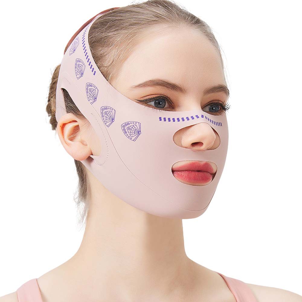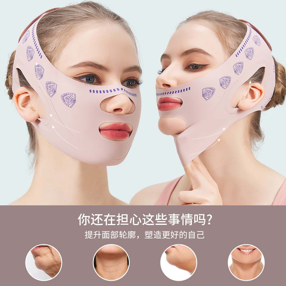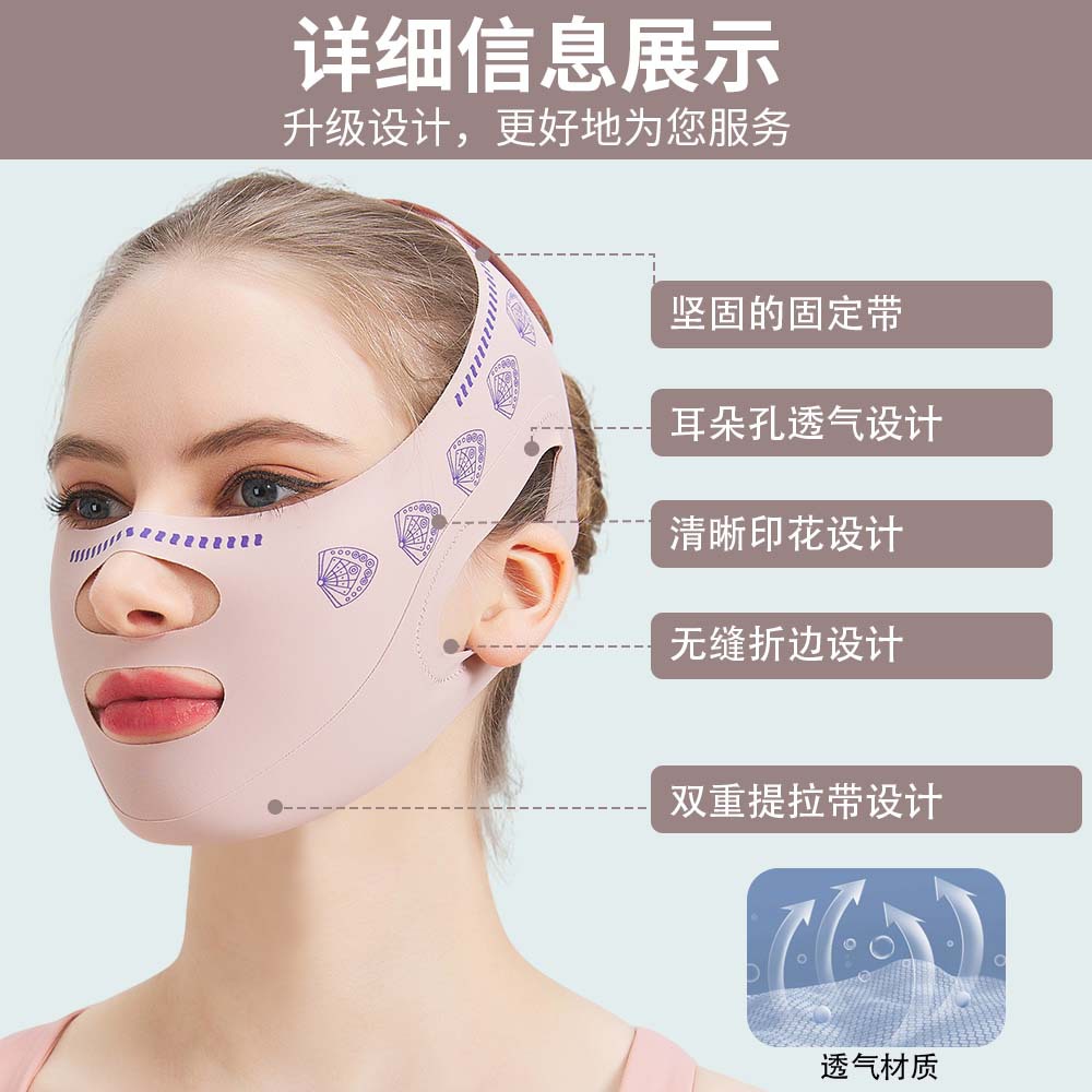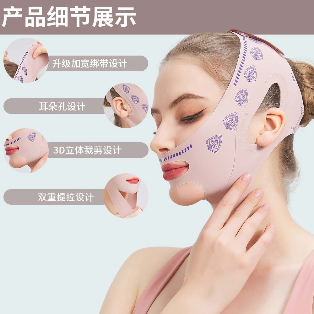 升级款物理加压双重提拉面罩 粉色蝴蝶印花双下巴法令纹舒适透气V脸紧致绷带1个