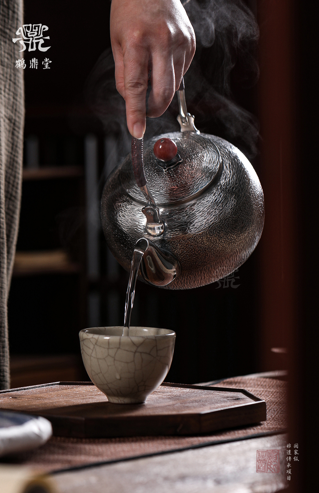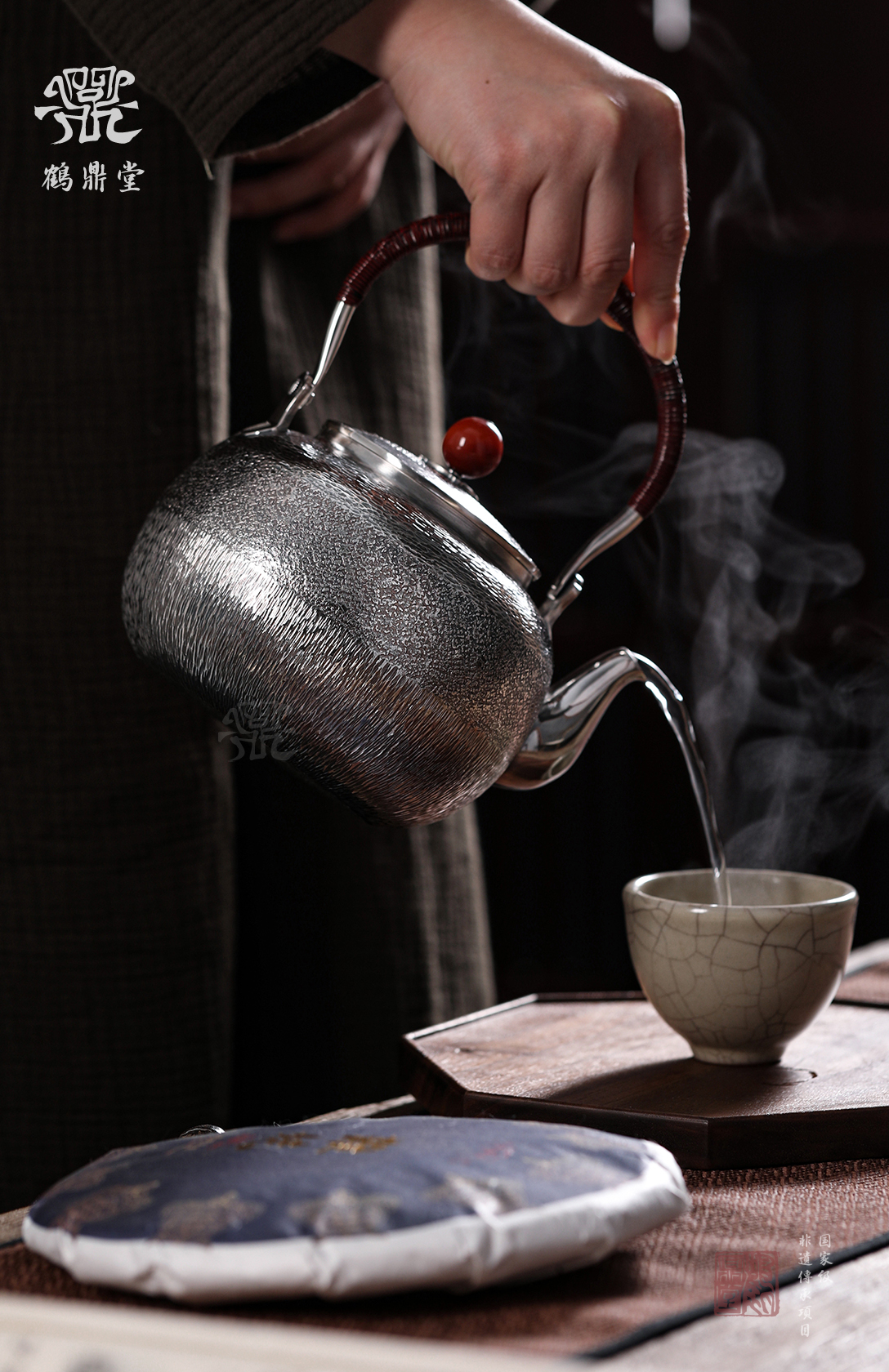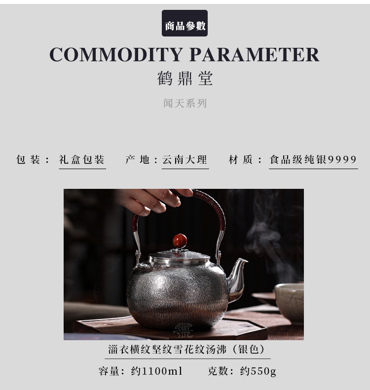 鹤鼎堂银壶闻天系列淄衣横纹坚纹雪花纹汤沸(银色)(缺货)