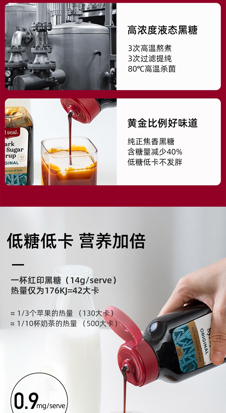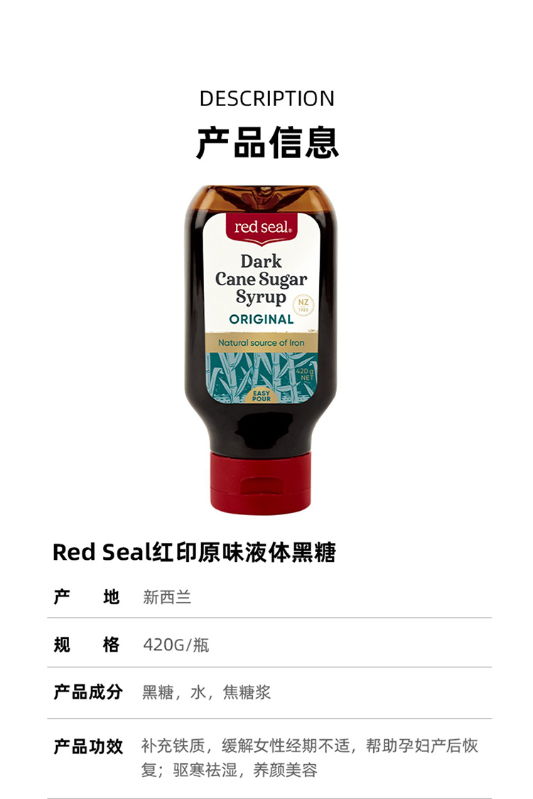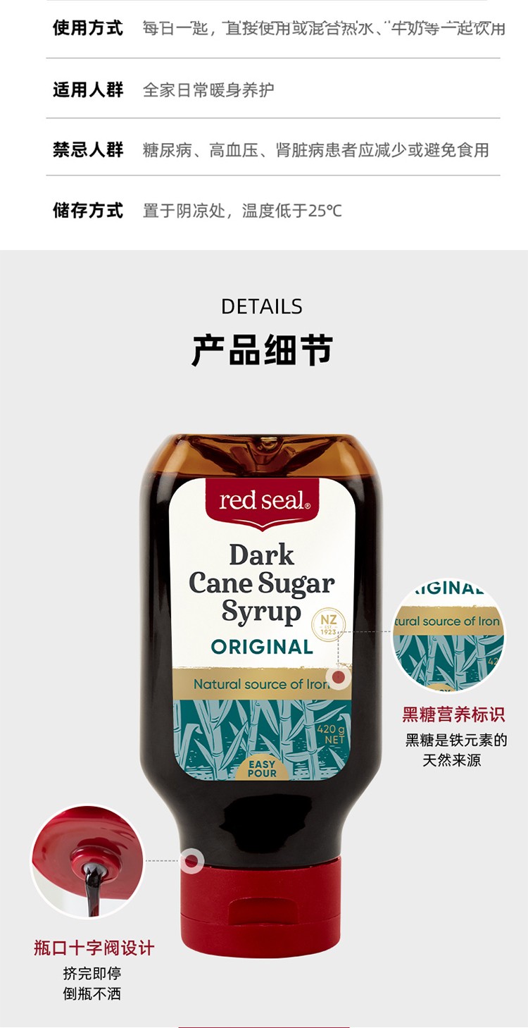【香港直邮】新西兰进口RedSeal红印液态黑糖原味420g