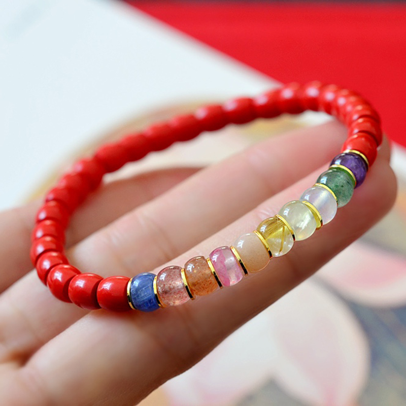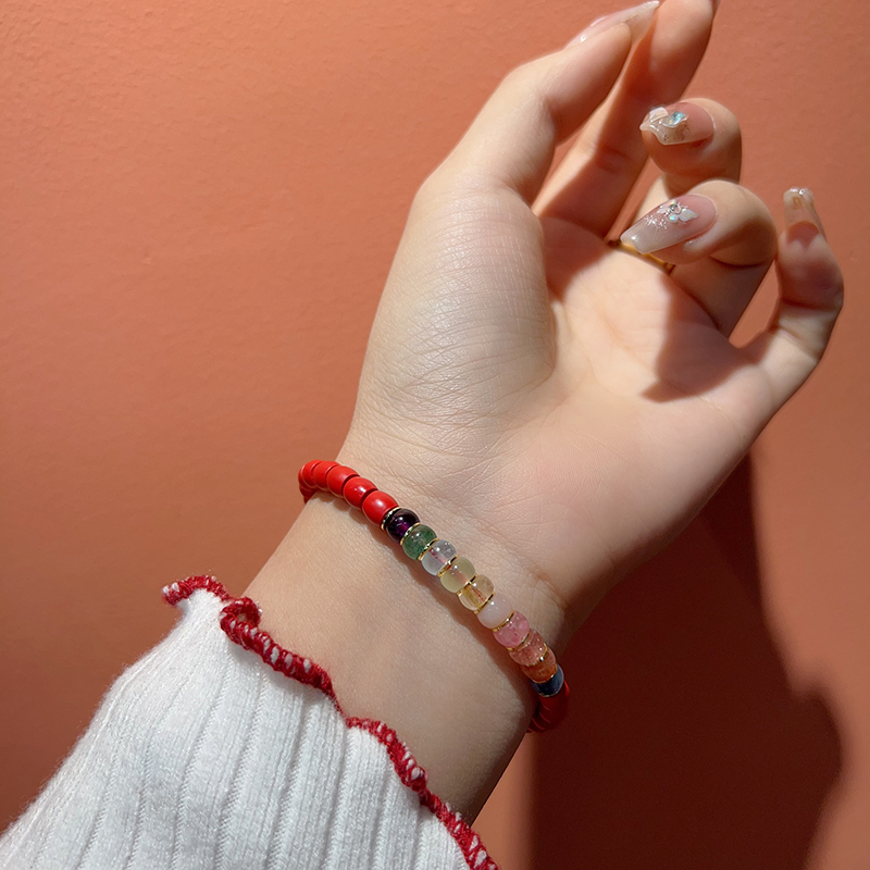 【朱砂在身,平安一生【你我都要“朱”事顺利】多:高含量红砂约5*6,天然水晶石:紫水晶,东陵玉,蓝玉髓,柠檬黄水晶,钛晶,太阳石,蔷薇辉石,草莓晶,草莓晶,蓝晶