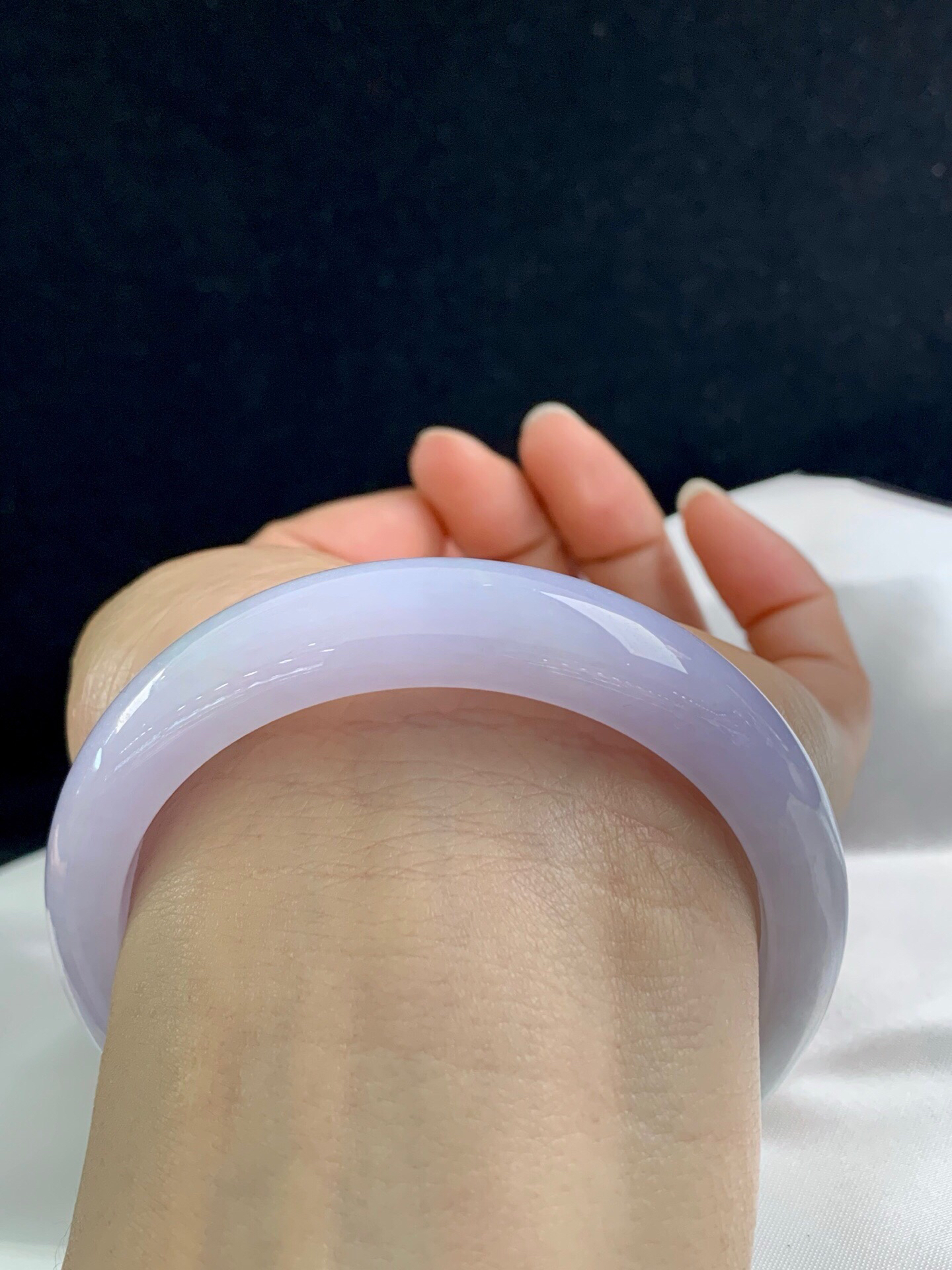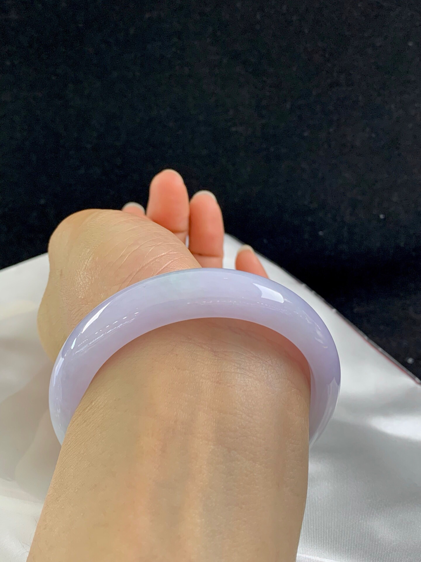 612504,58.6圈口,糯化飘紫正圈平安镯,淡春彩色系,半山半水色,底子细润,完美,尺寸:58.6-13.8-7.9,超值价💰15000 #优石客珠宝#香玉荟萃