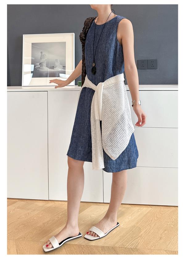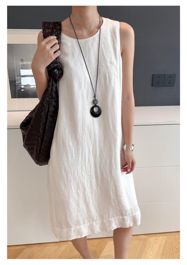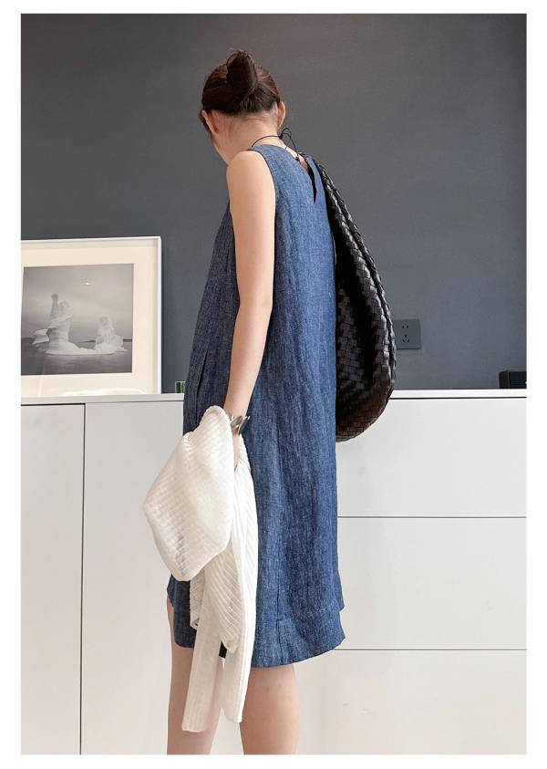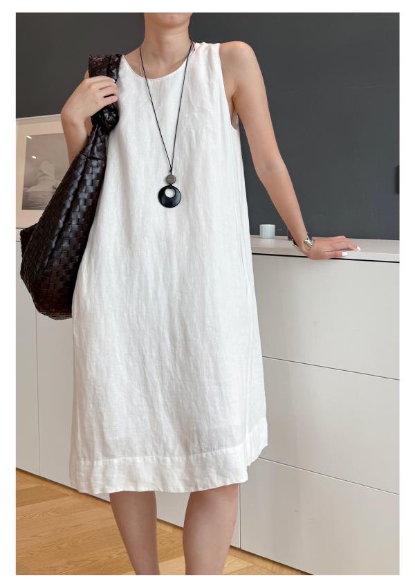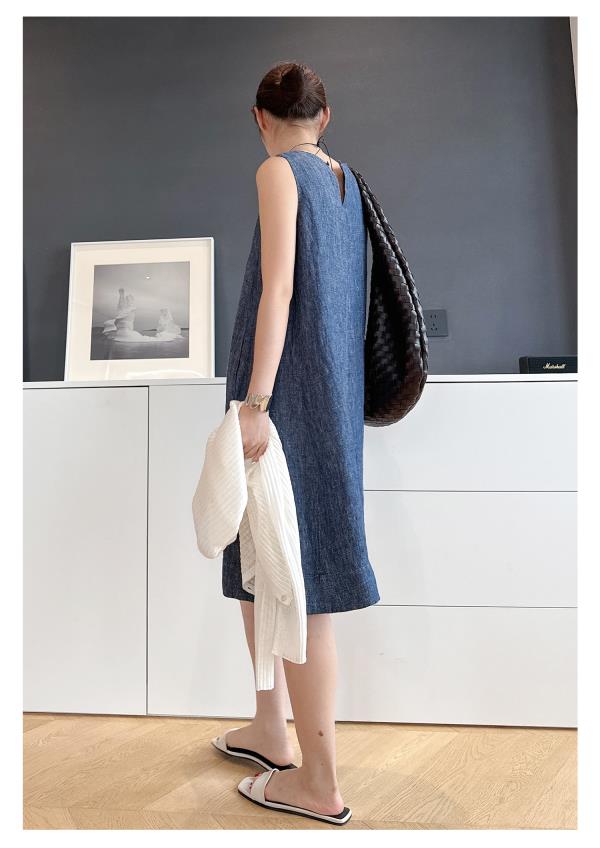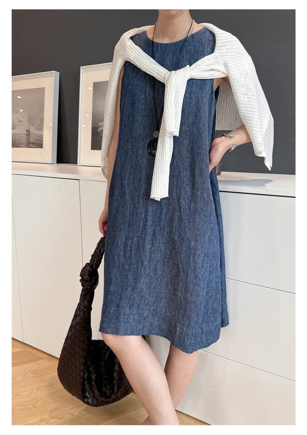 棉仓3621516006-IACHOE亚麻无袖中长裙