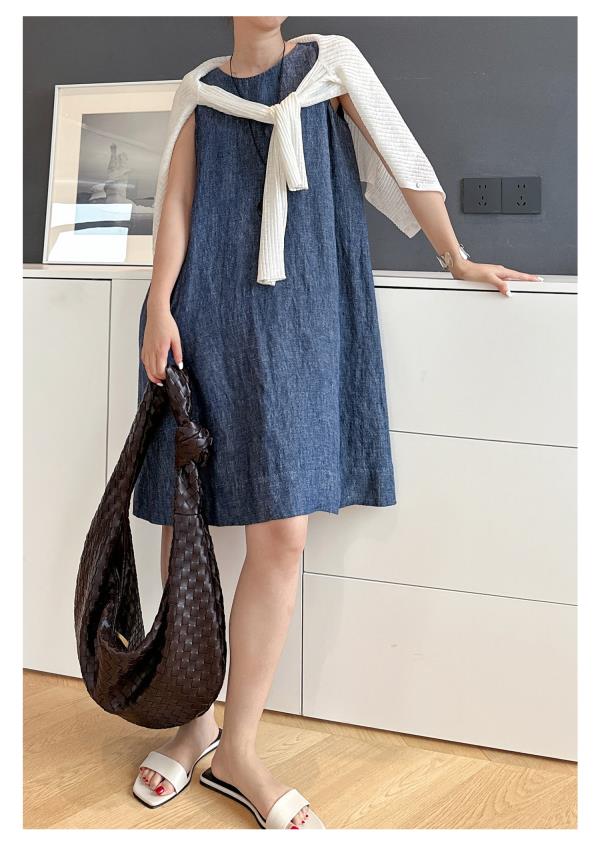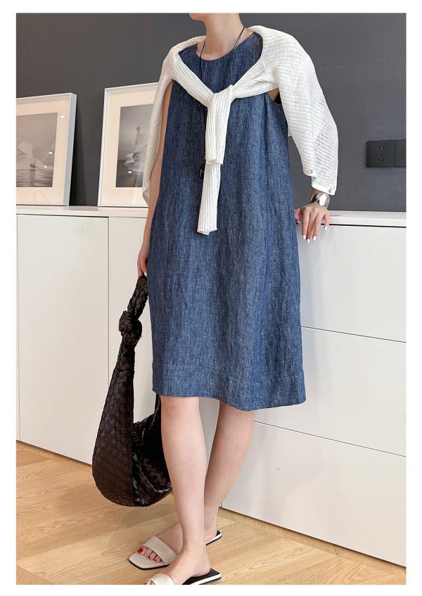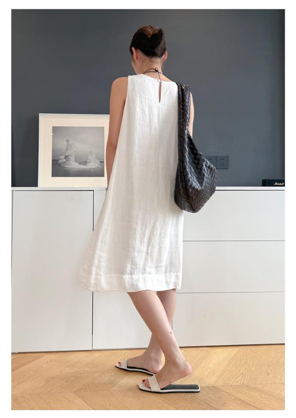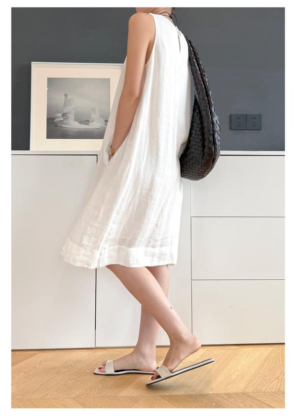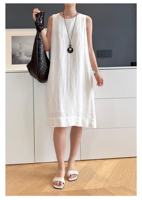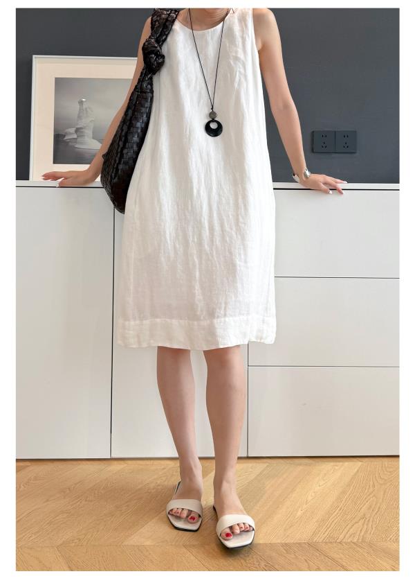 棉仓3621516006-IACHOE亚麻无袖中长裙