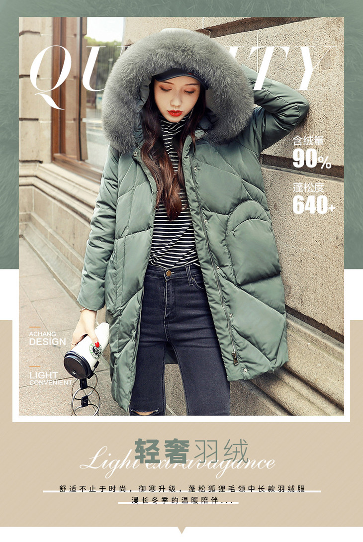 【羽绒服女】.爱思怡羽绒服中长款 宽松时尚大毛领加厚保暖女士外套