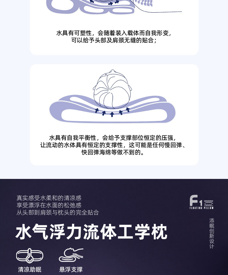 Nitetronic添眠浮力枕F1 水气浮力流体工学枕 冰凉枕 夏季枕头