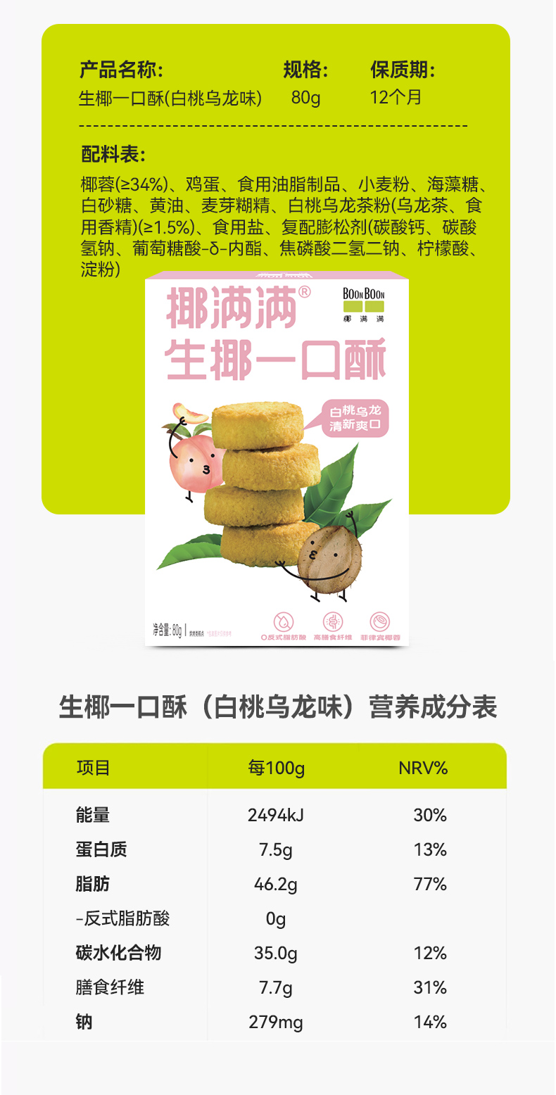 BOONBOON椰满满生椰一口酥饼干糕点食品蛋黄酥点心解馋休闲小零食