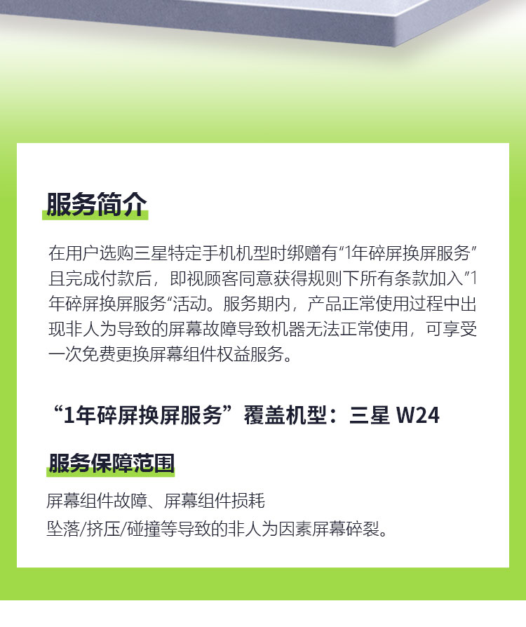 一年碎屏服务 W24( 在手机下单的一周内单拍即可生效,除此以外不可单拍)