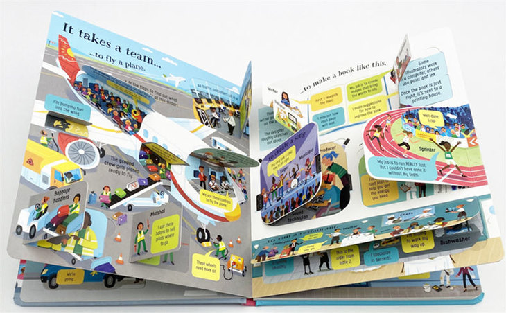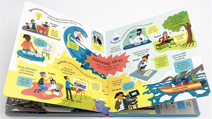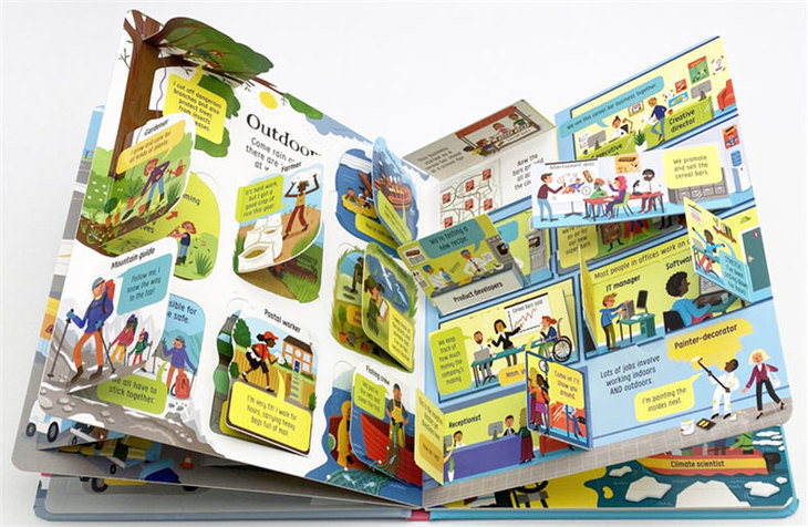 成年人每天都做什么?翻开折页,打开一个充满可能性的世界,从护士,到音乐家或宇航员,你会发现你可以从事100多种职业。