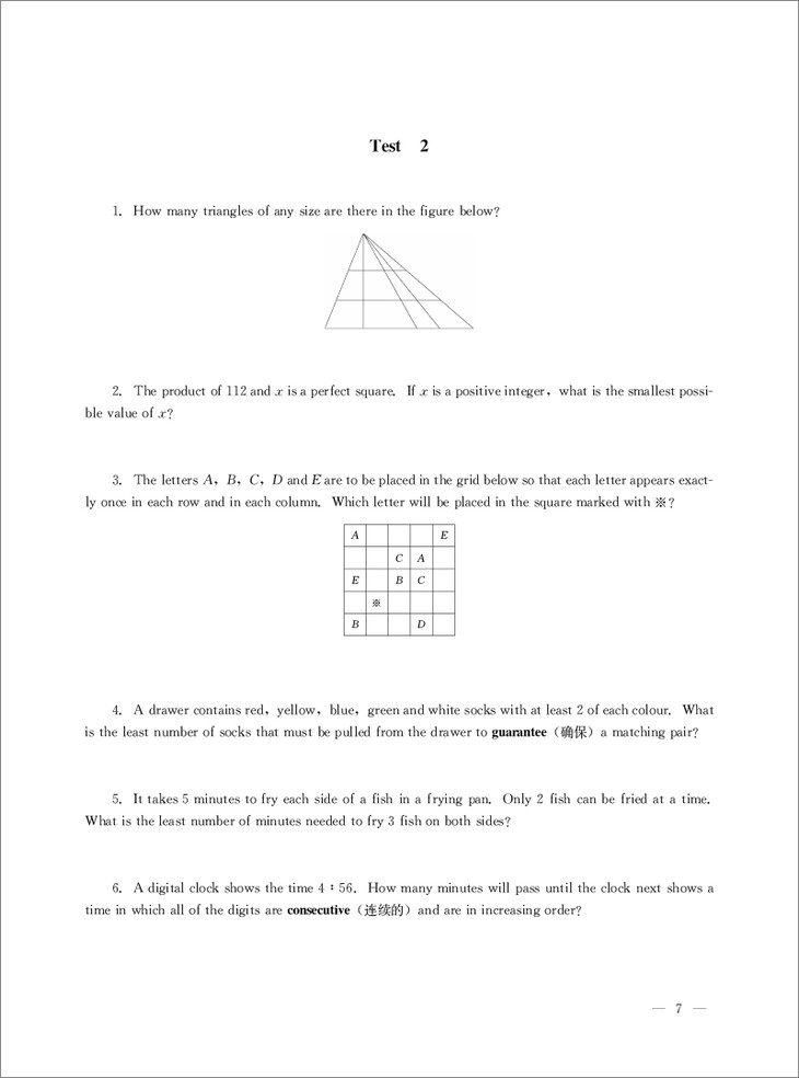 六、七年级的孩子,可以做的事情其实很多!有的孩子希望参加重点初中的入学测试,而测试中的数学题以英文形式呈现,似乎已成为一种潮流;有的孩子英文和数学都达到了一定的水准,希望参加国外的数学竞赛,以证明自己的实力;有的孩子希望到英语国家继续自己的学业……