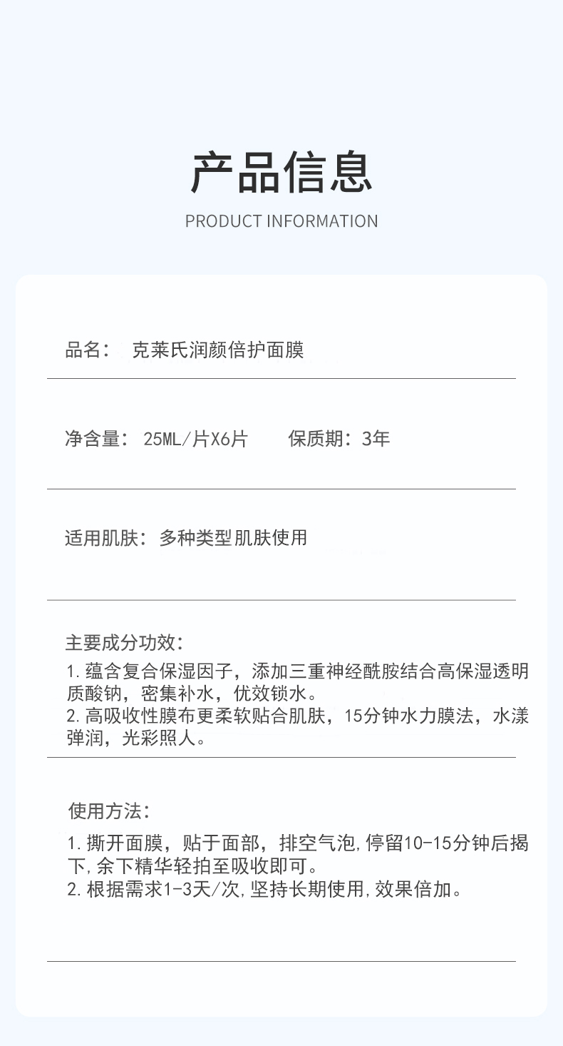 克莱氏润颜倍护面膜25ml*6p水漾保湿