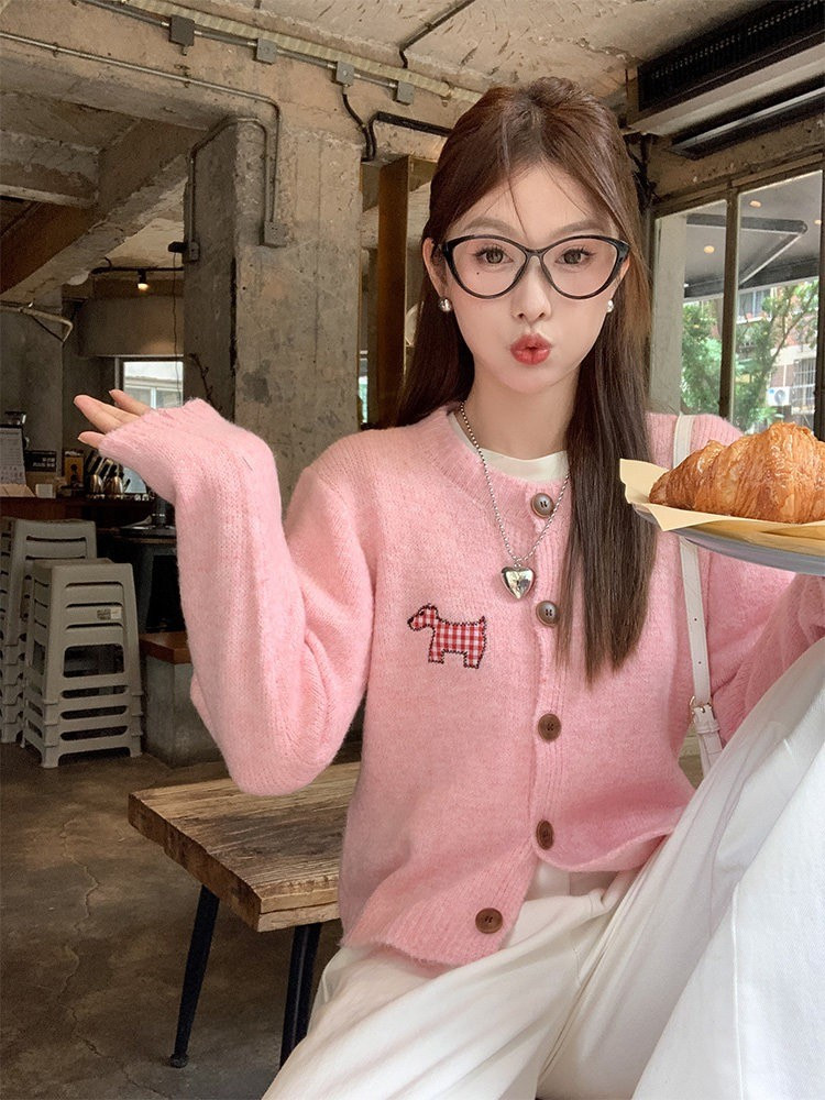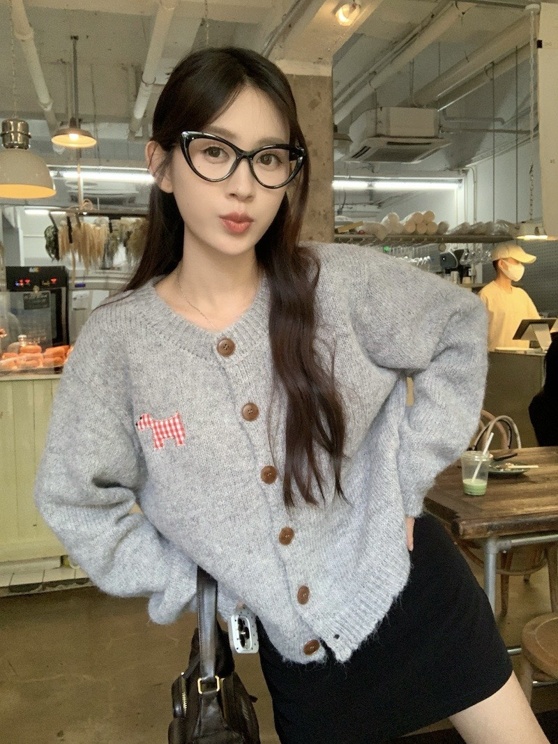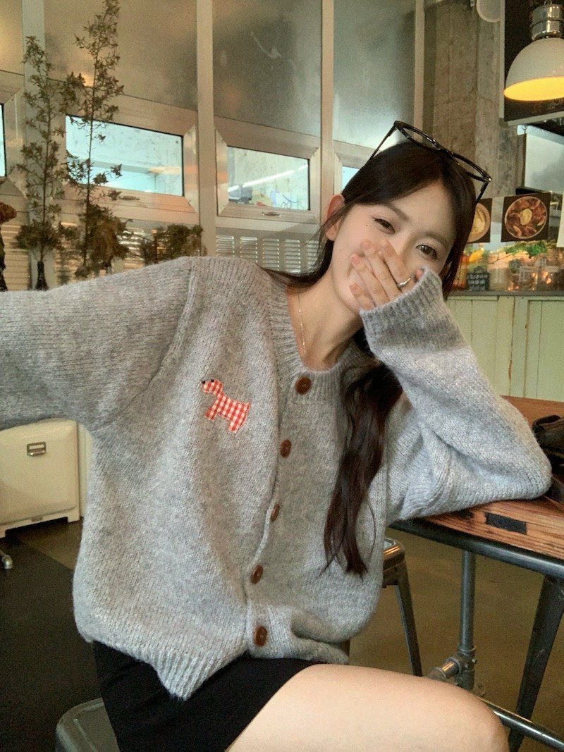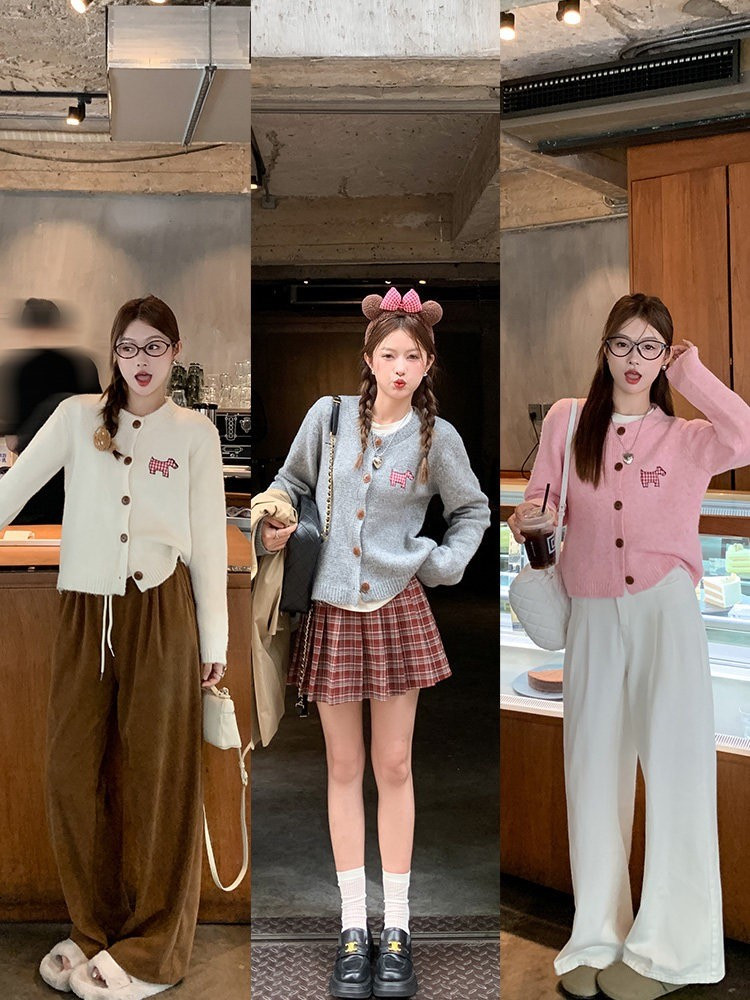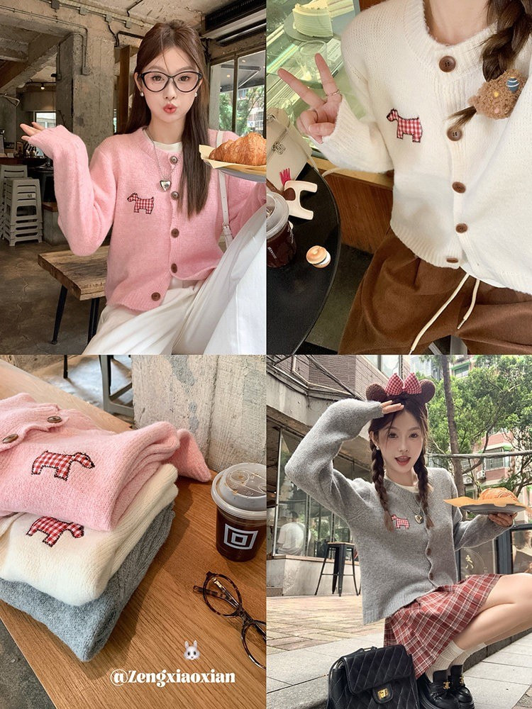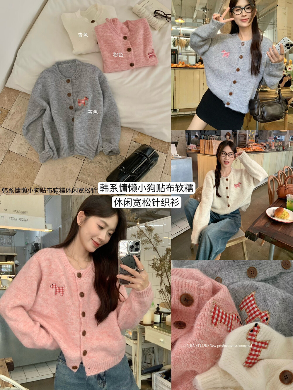 【可爱小狗毛衣开衫】永不过时的经典灰色,把“高级"气质拿捏!三色可穿!浅浅的期待一下秋天,软糯糯的安哥拉纤绒纱线,不易粘毛不易起球且超好打理