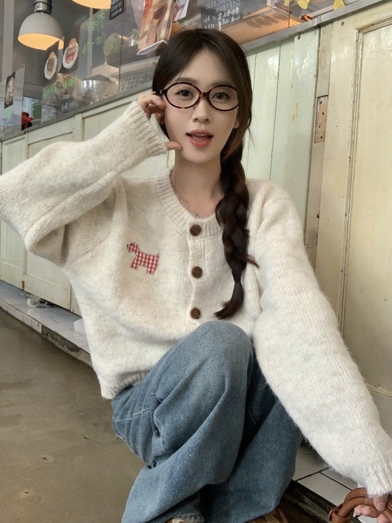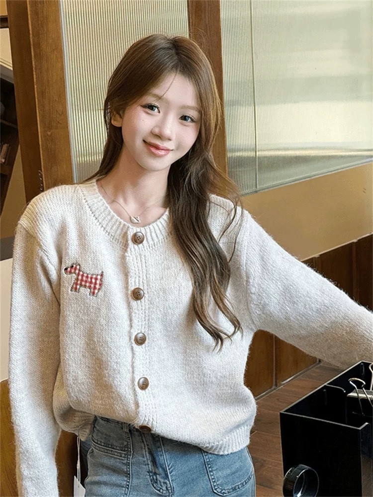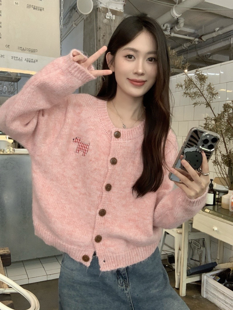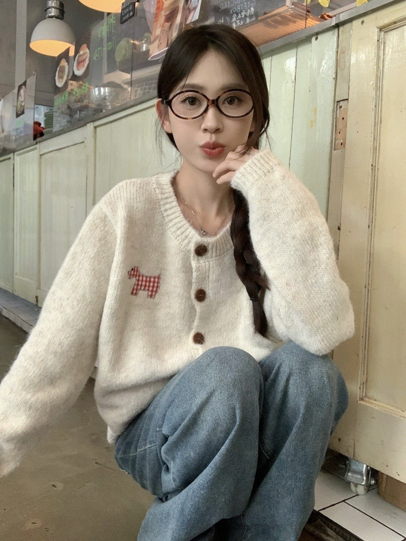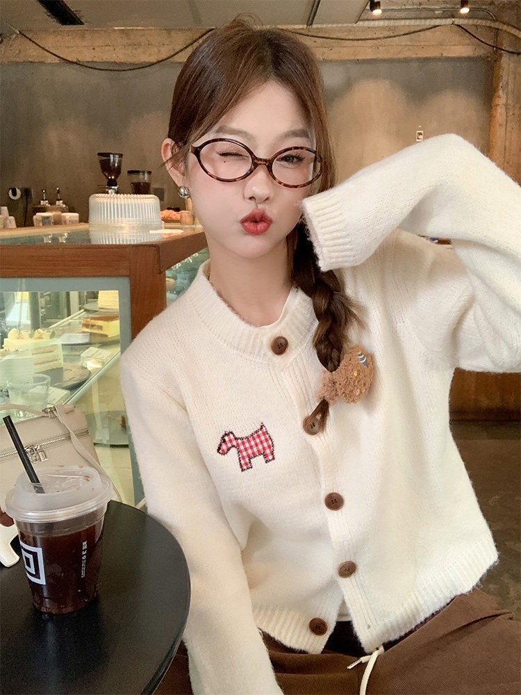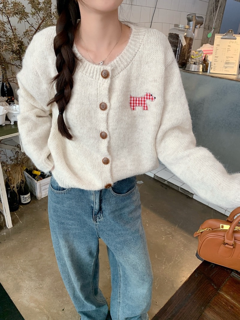 【可爱小狗毛衣开衫】永不过时的经典灰色,把“高级"气质拿捏!三色可穿!浅浅的期待一下秋天,软糯糯的安哥拉纤绒纱线,不易粘毛不易起球且超好打理