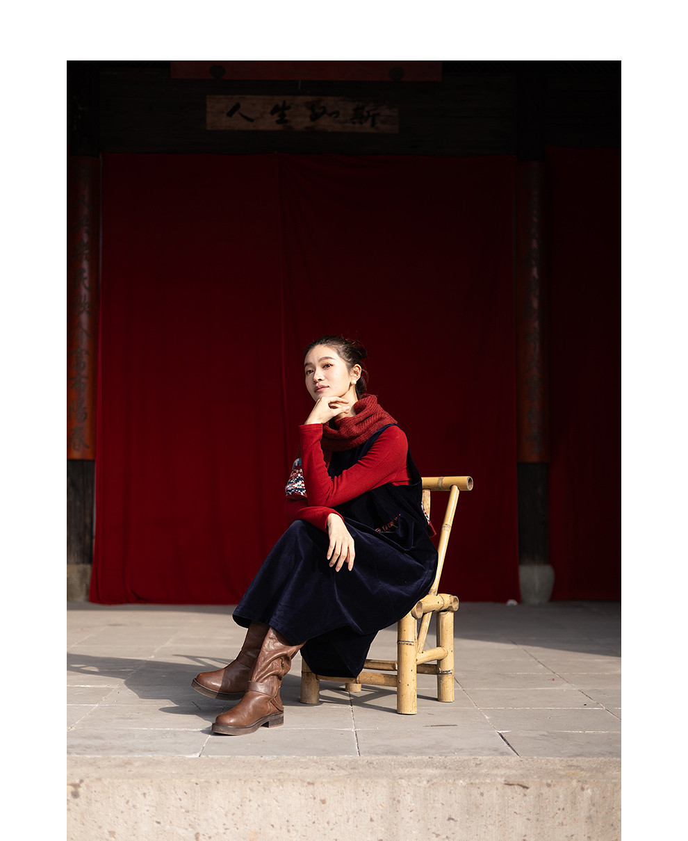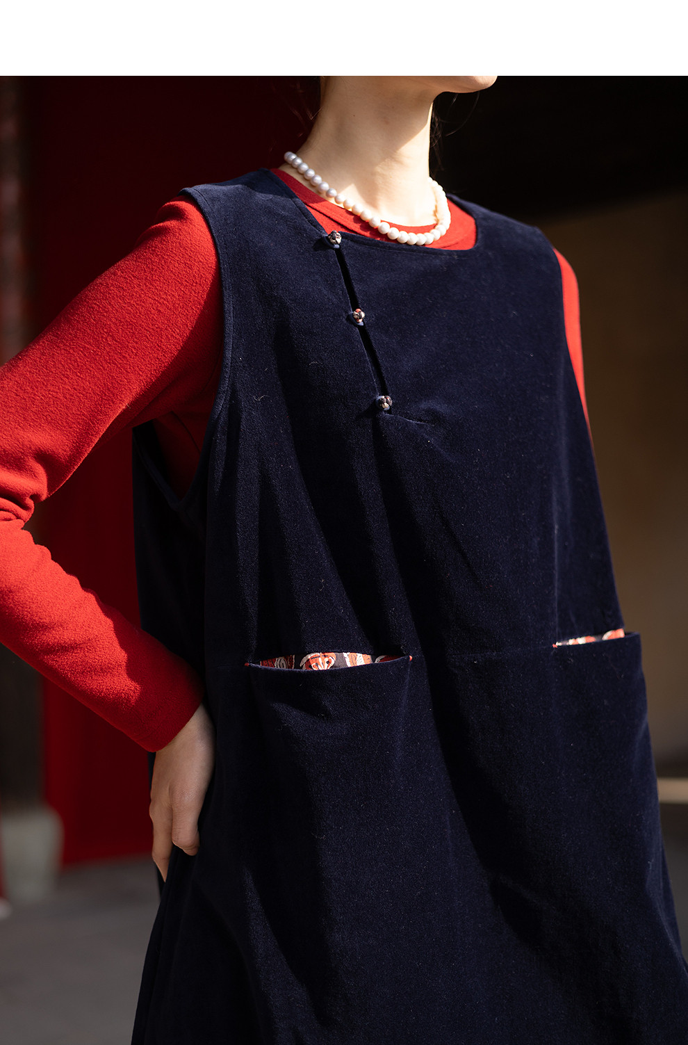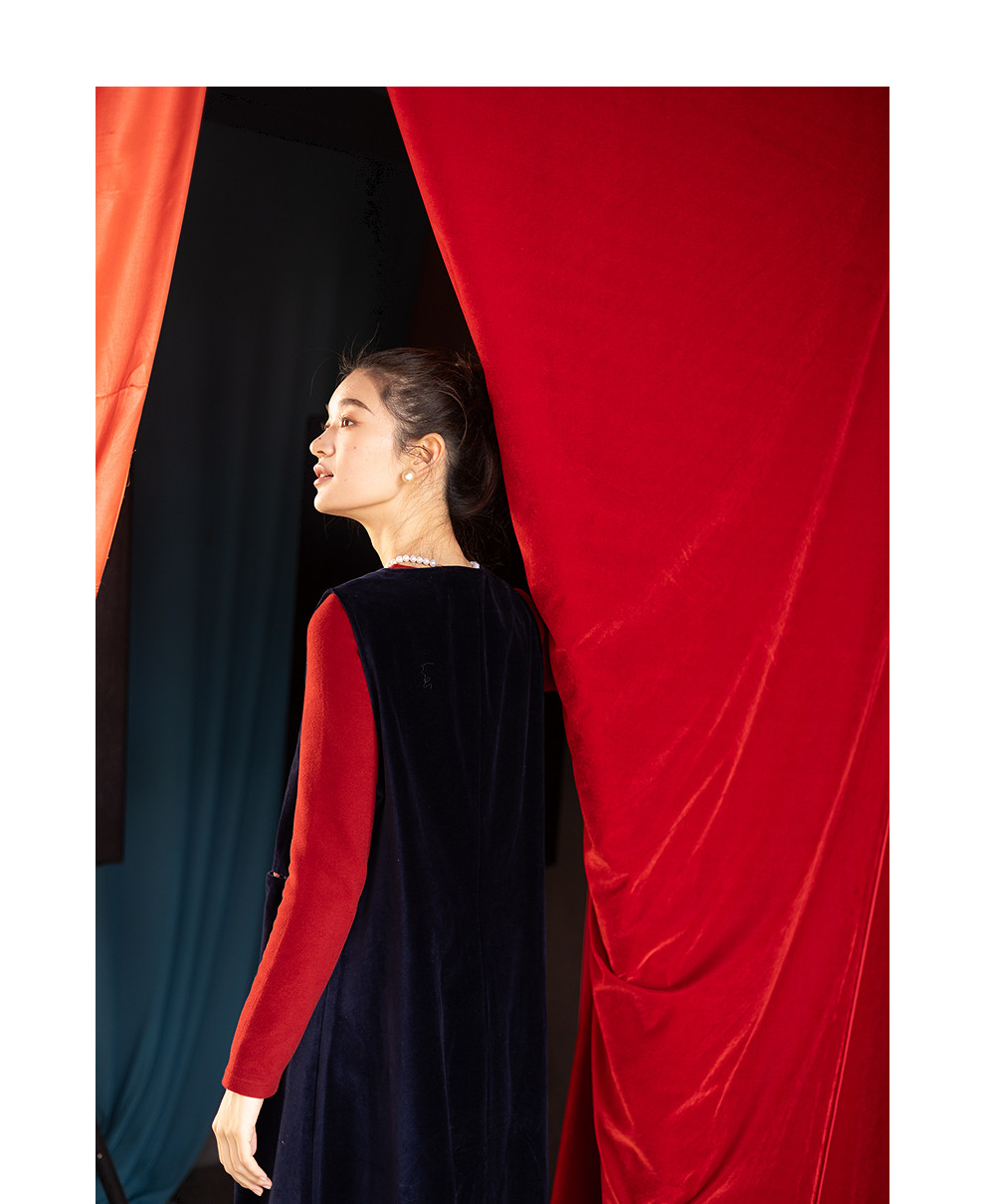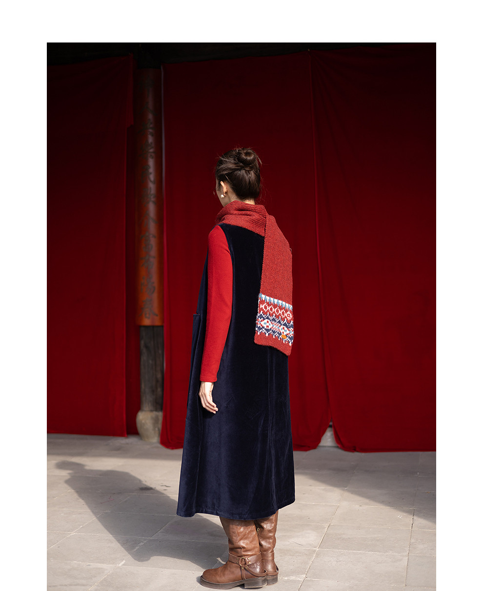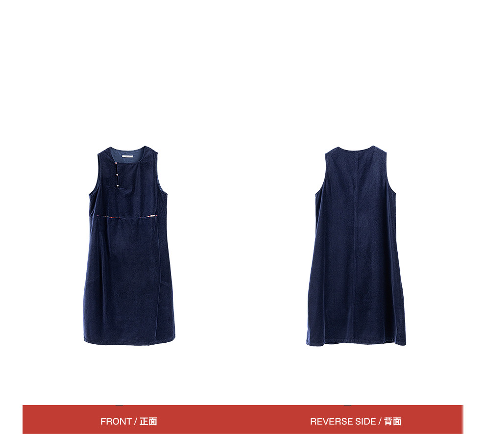 绽放014朵/棉平绒灯芯绒方领盘扣双层背心裙文艺叠穿无袖连衣裙女