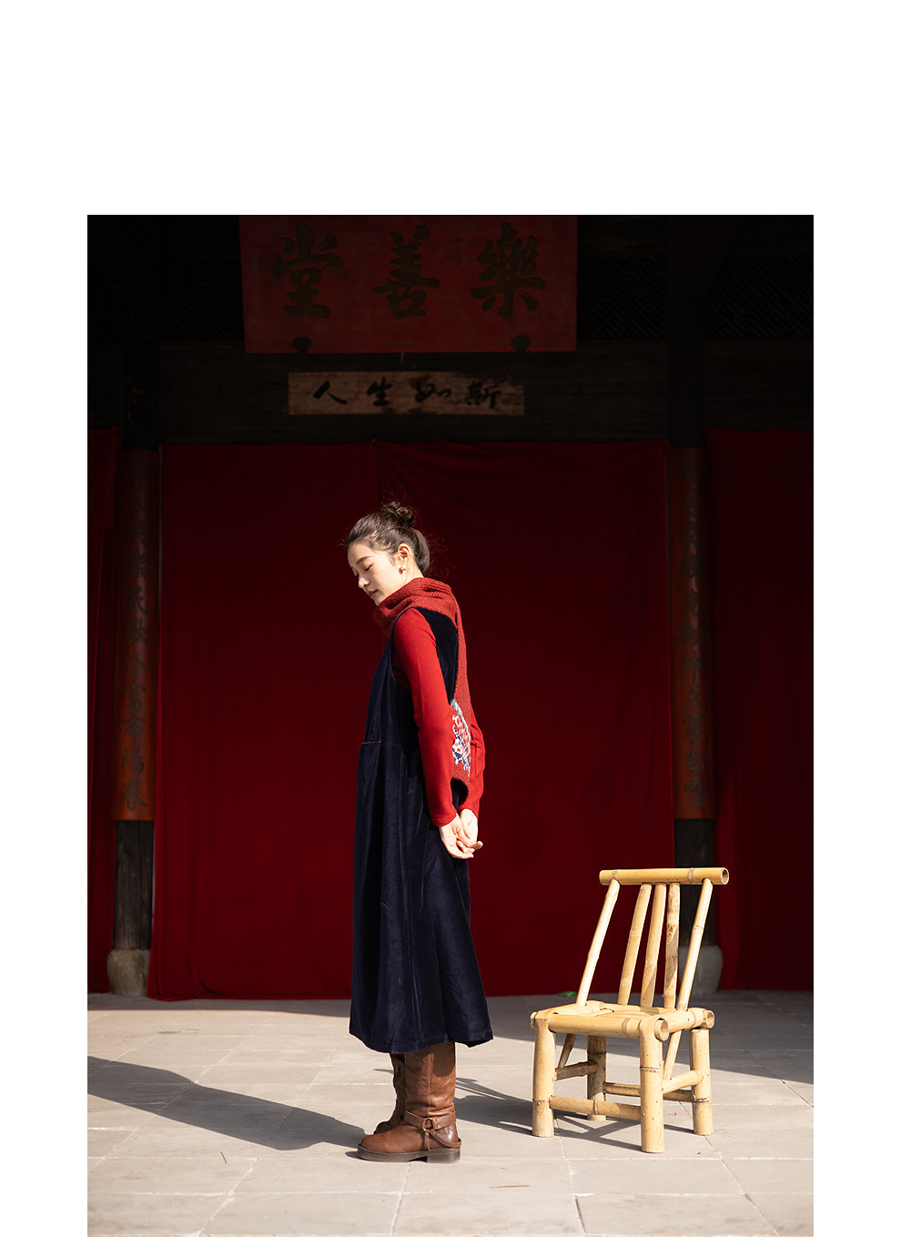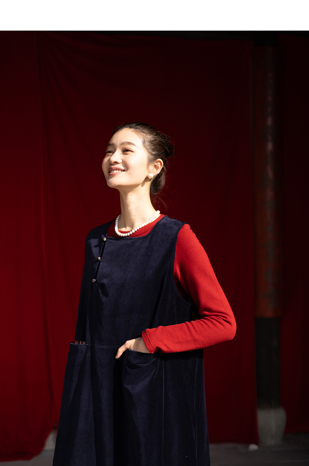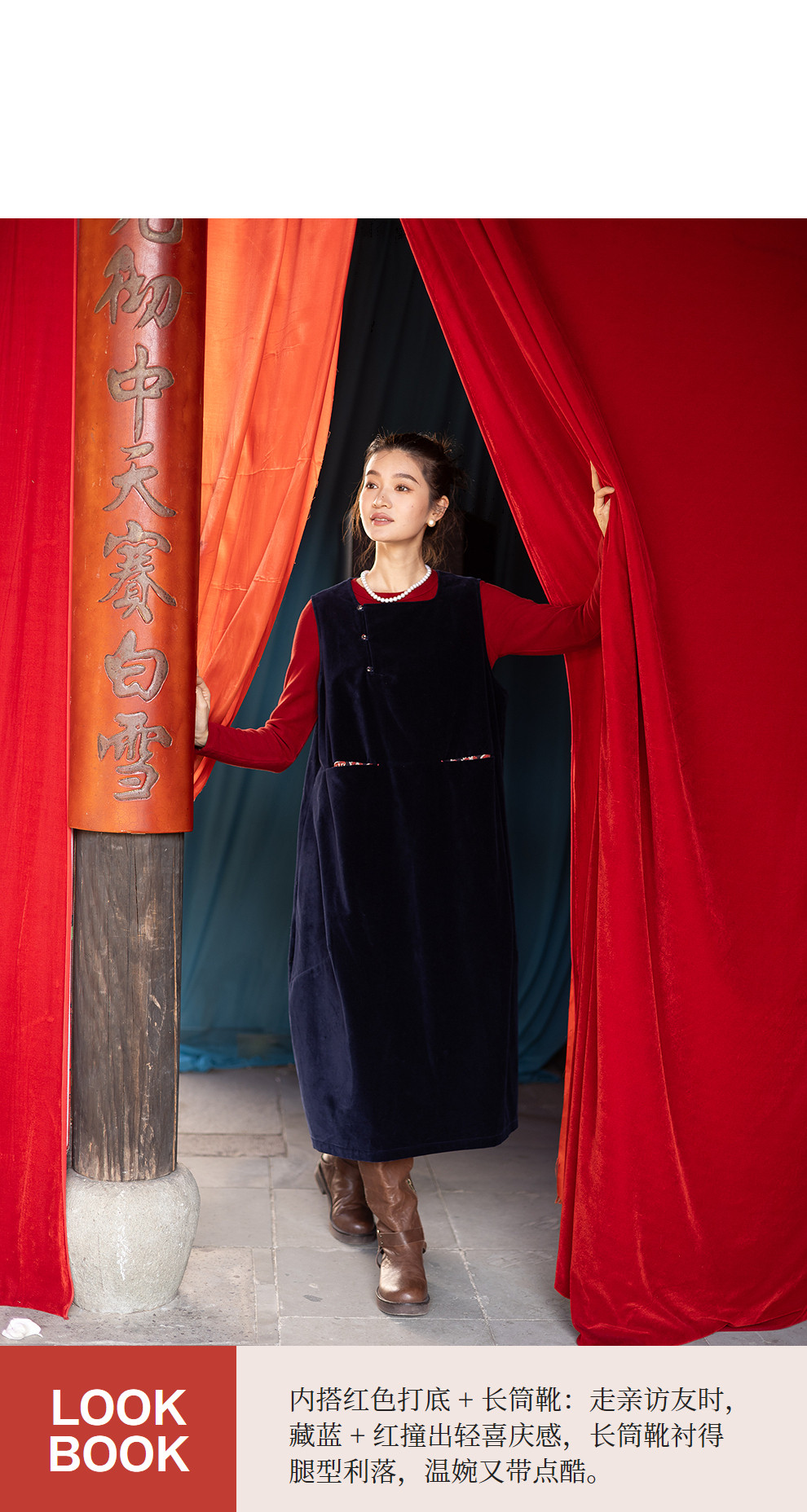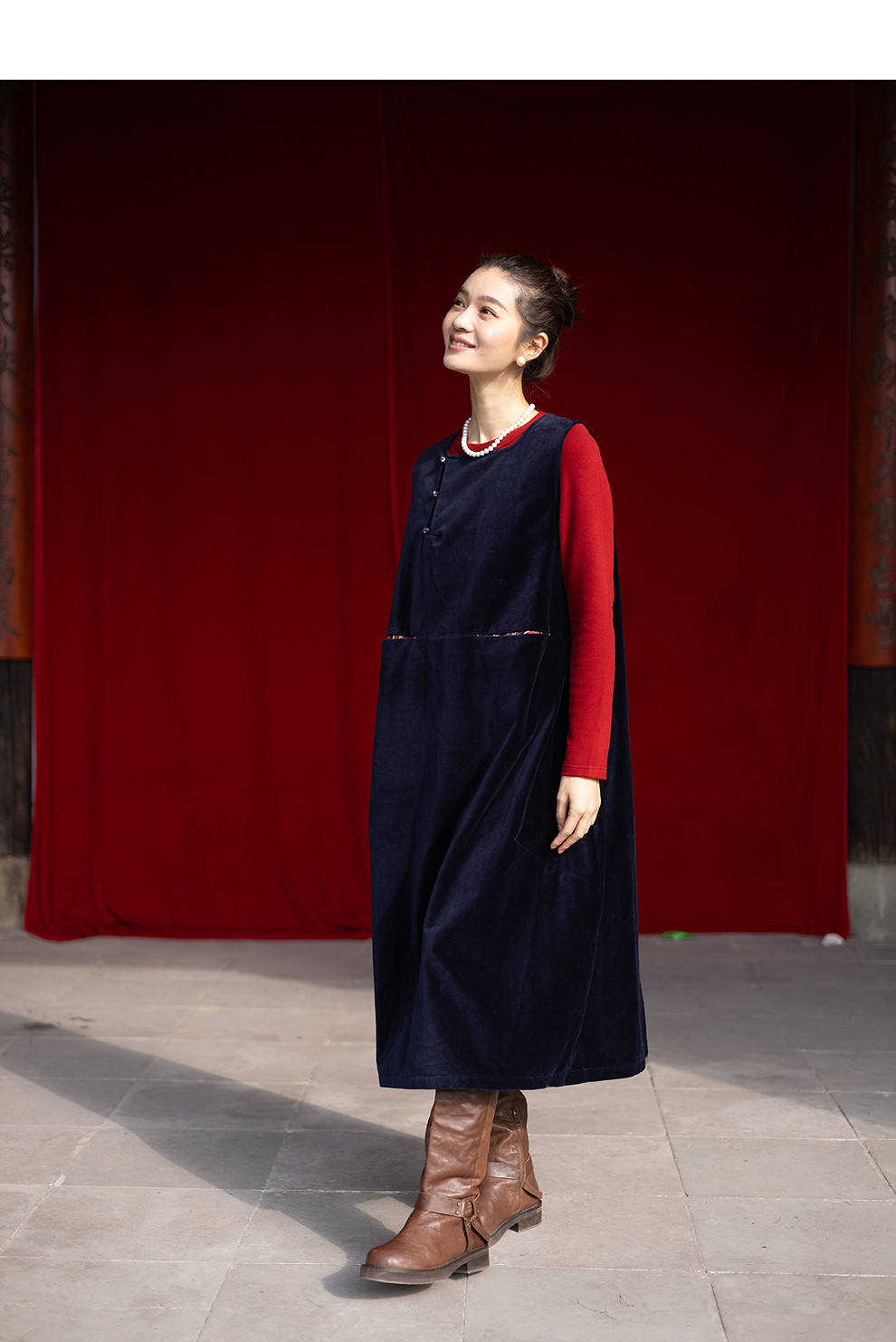 绽放014朵/棉平绒灯芯绒方领盘扣双层背心裙文艺叠穿无袖连衣裙女
