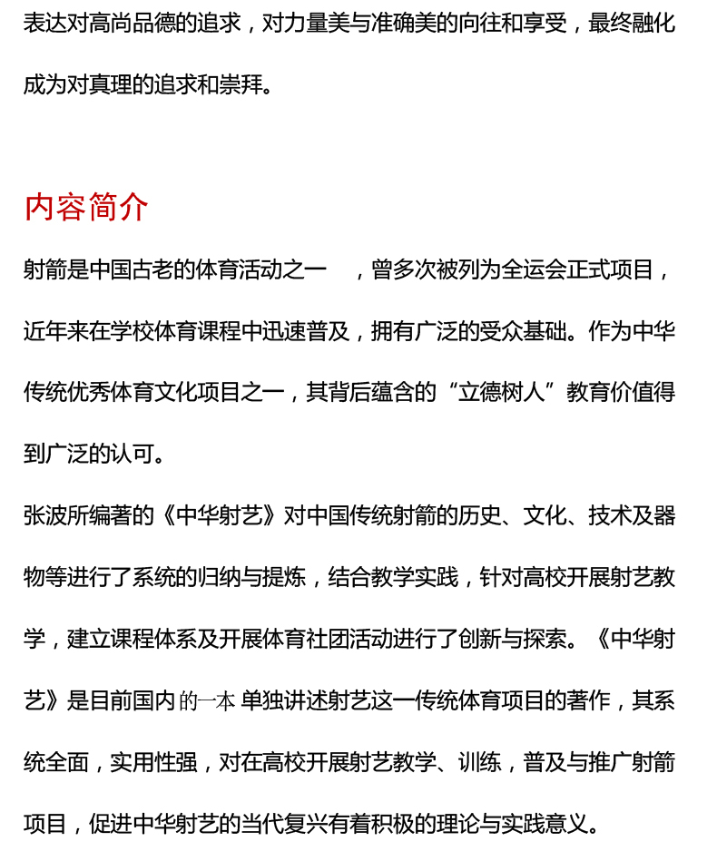 中华射艺 张波主编 中国传统体育文化 中华射艺基础教学与训练