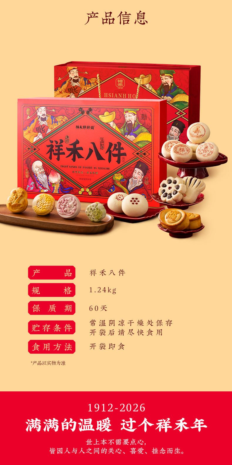 祥禾饽饽铺 2026年年货糕点礼盒 京八件1240克