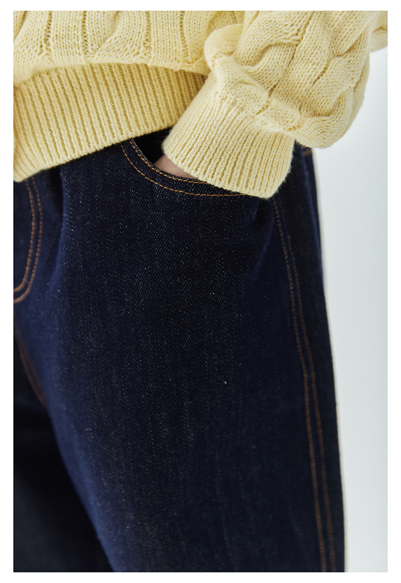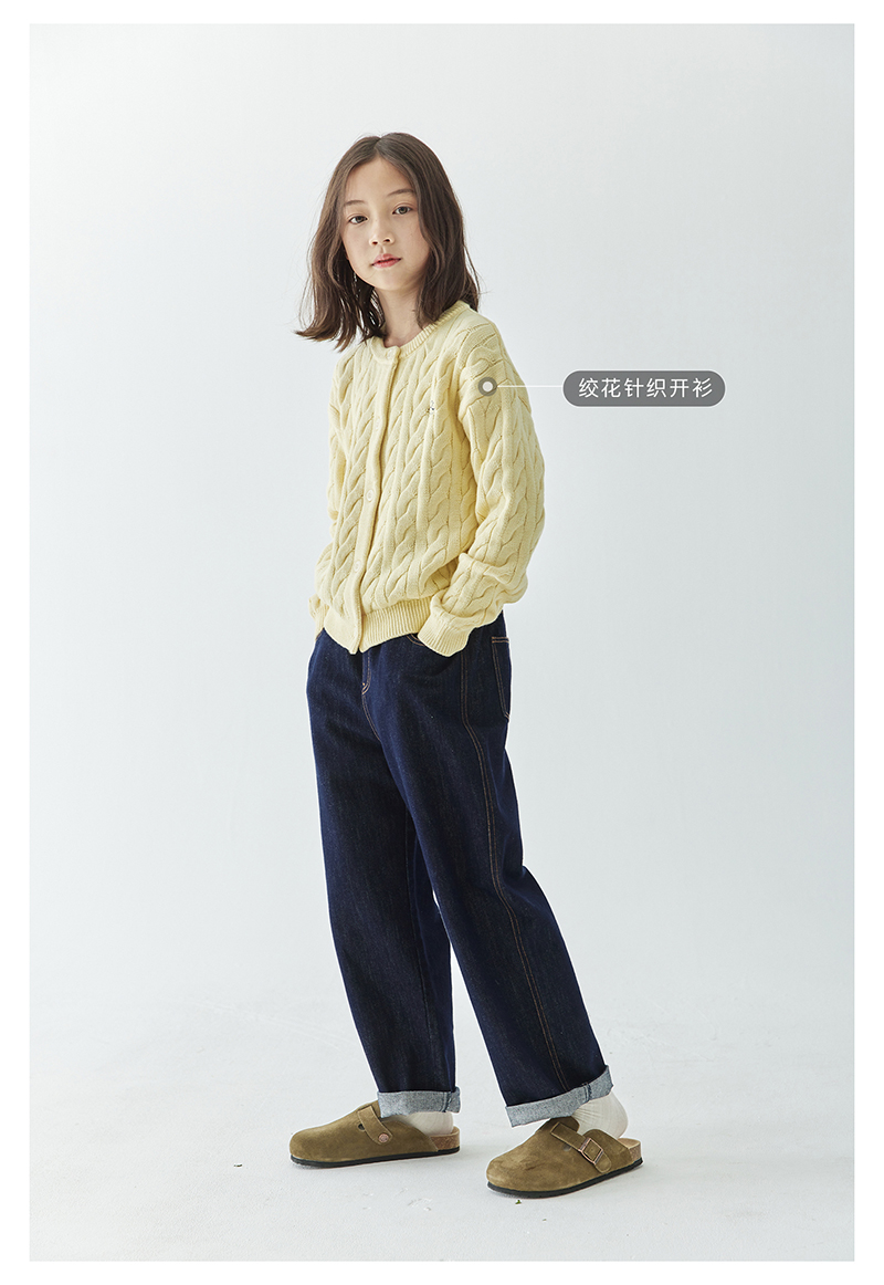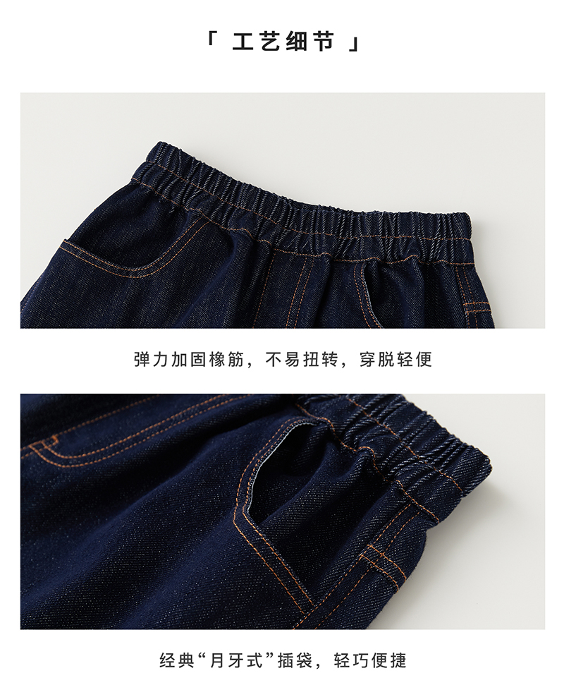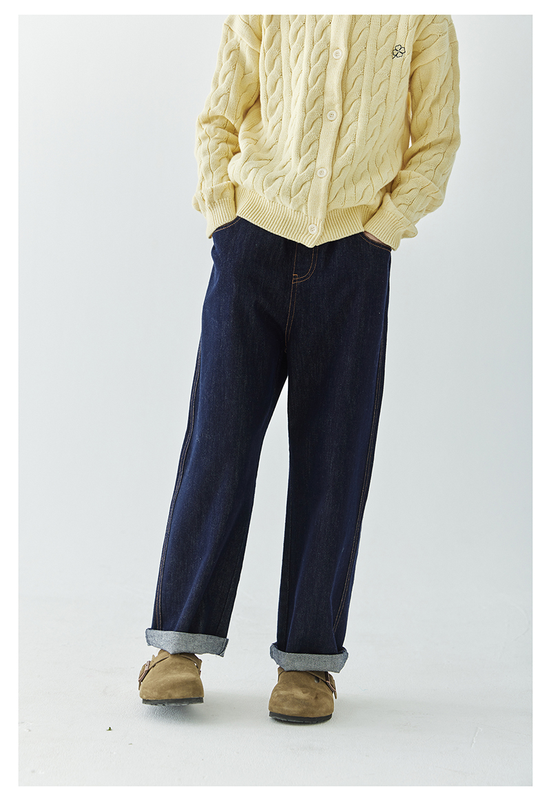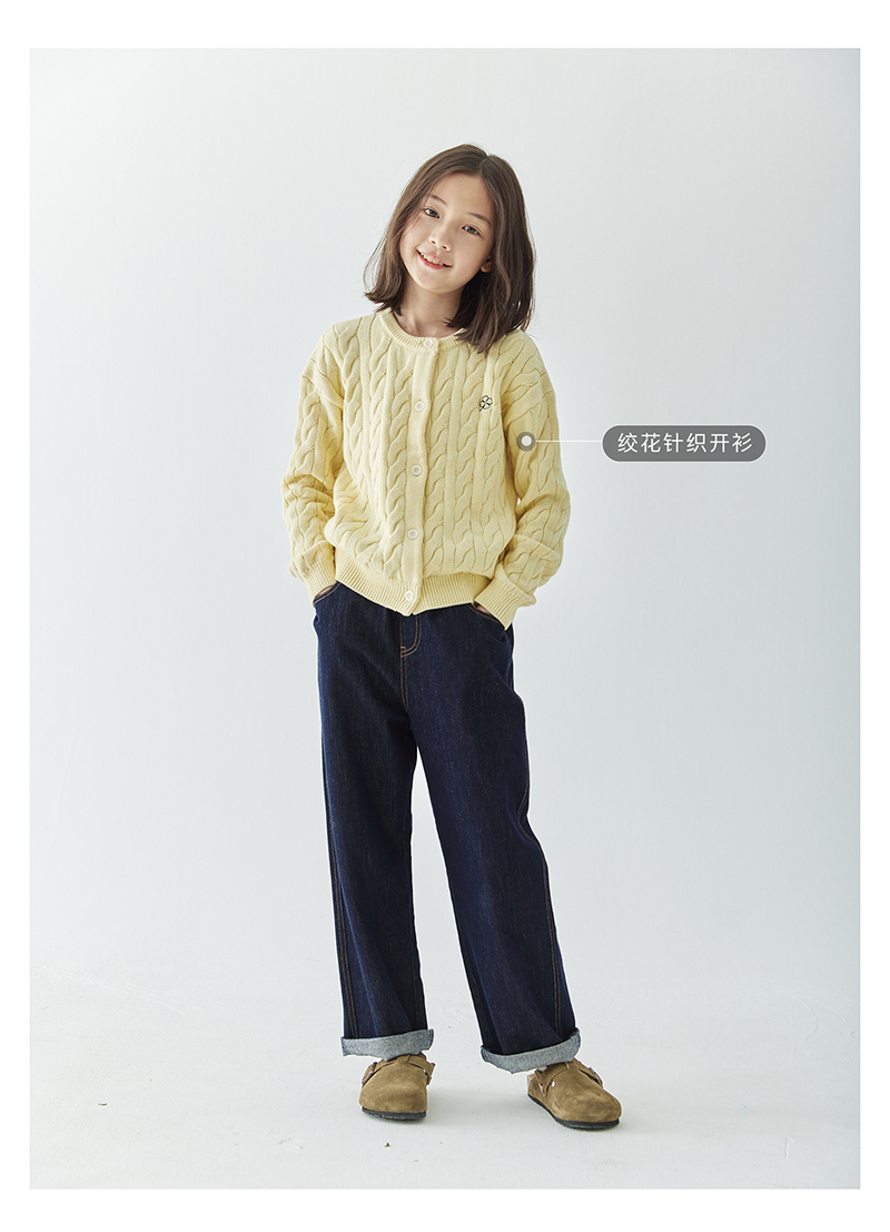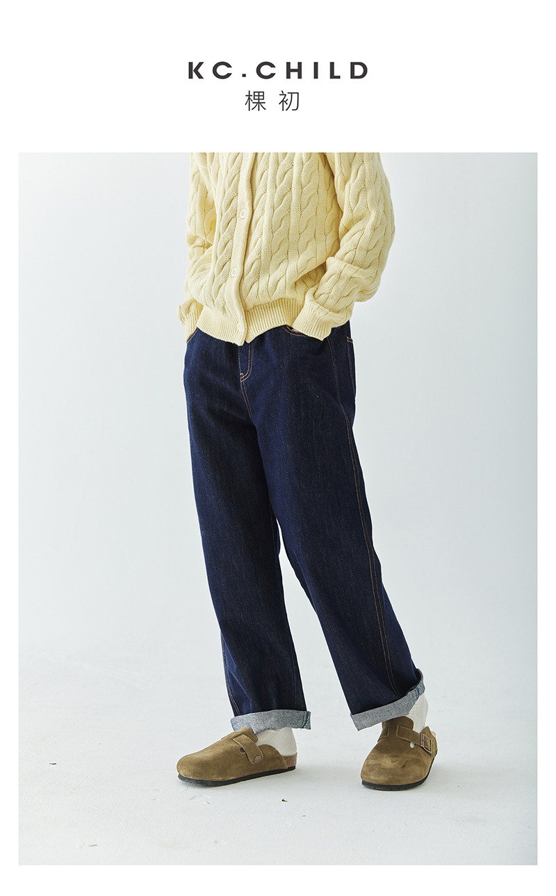 棵初2024新款童装秋季不落色复古牛仔裤中大童撞色明线直筒廓形裤