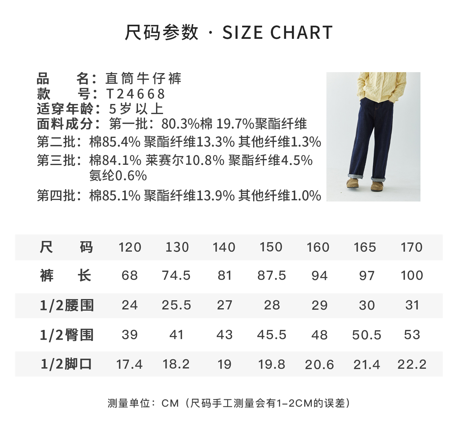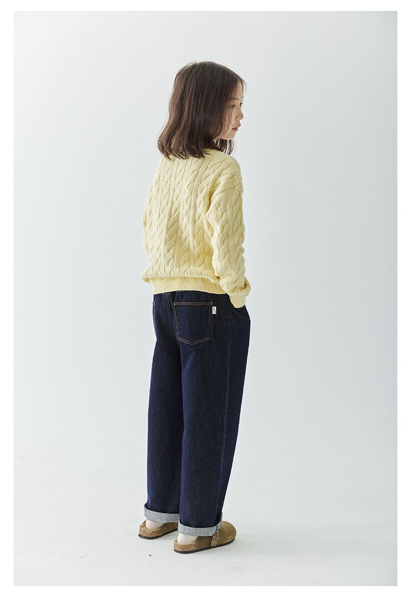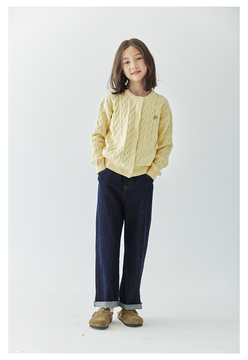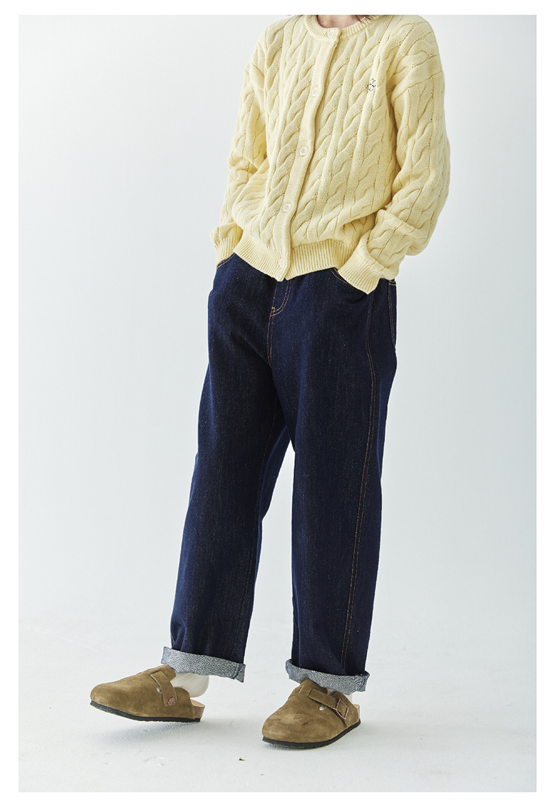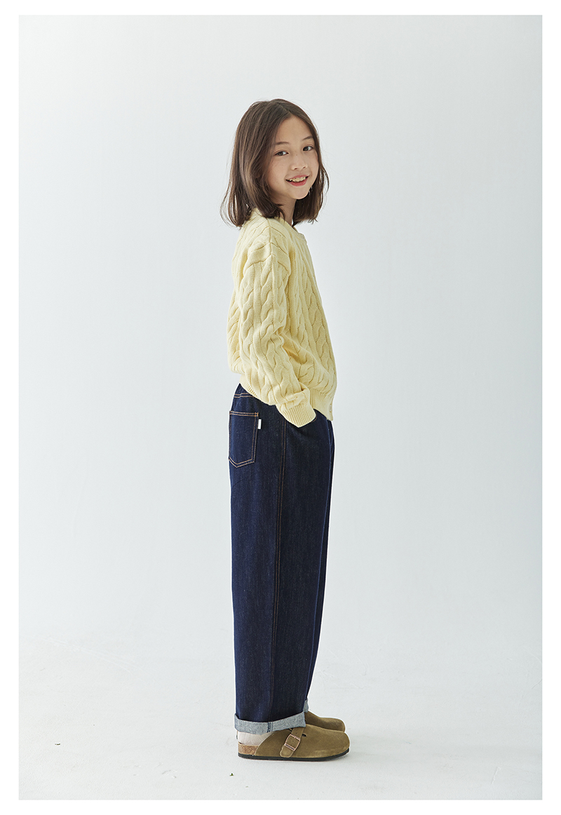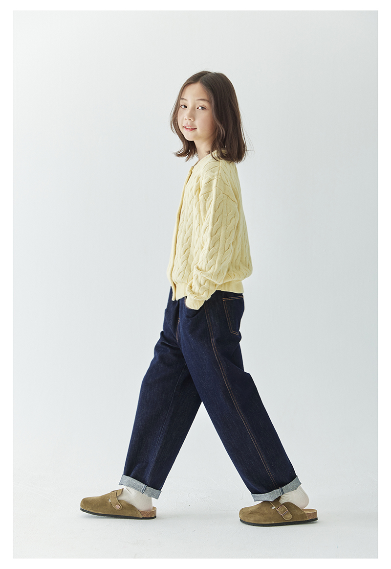 棵初2024新款童装秋季不落色复古牛仔裤中大童撞色明线直筒廓形裤