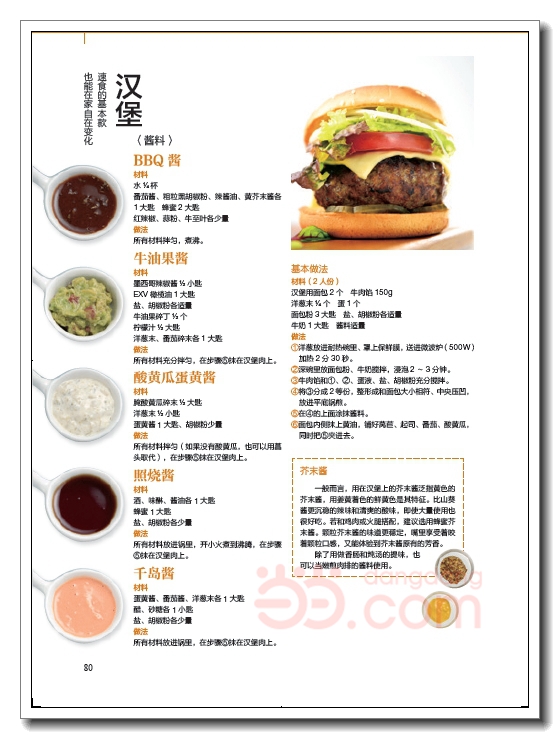 汉堡: BBQ 酱/牛油果酱/酸黄瓜蛋黄酱/照烧酱/千岛酱