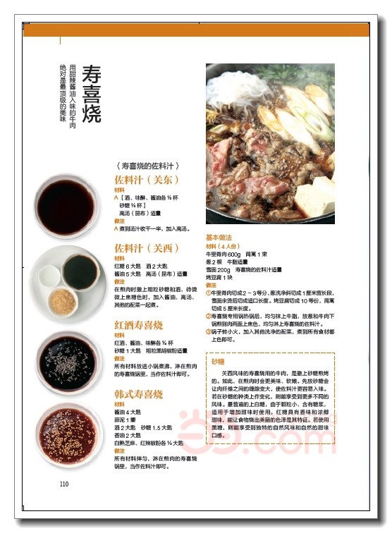 寿喜烧:佐料汁(关东)/佐料汁(关西)/红酒寿喜烧/韩式寿喜烧
