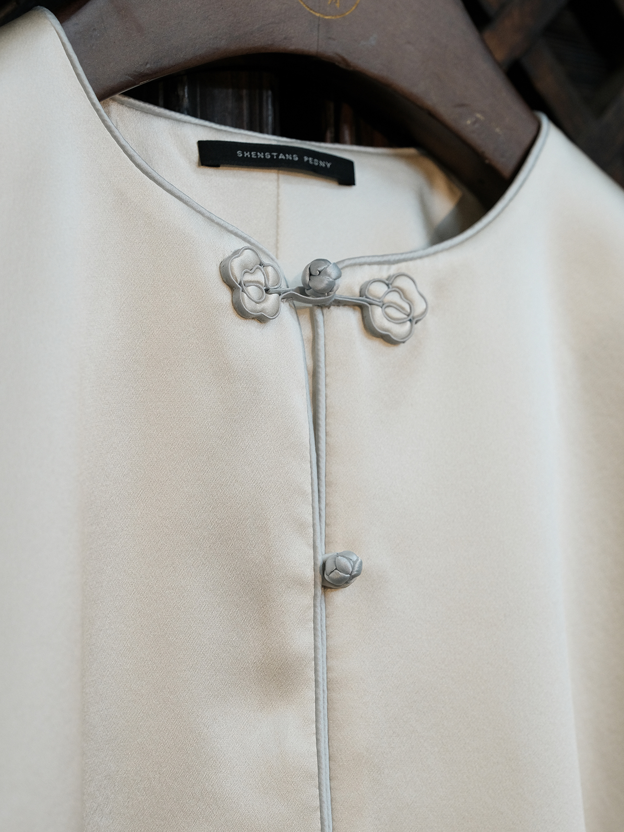 盛唐牡丹 |勃艮第红冠乐绉斜襟上衣