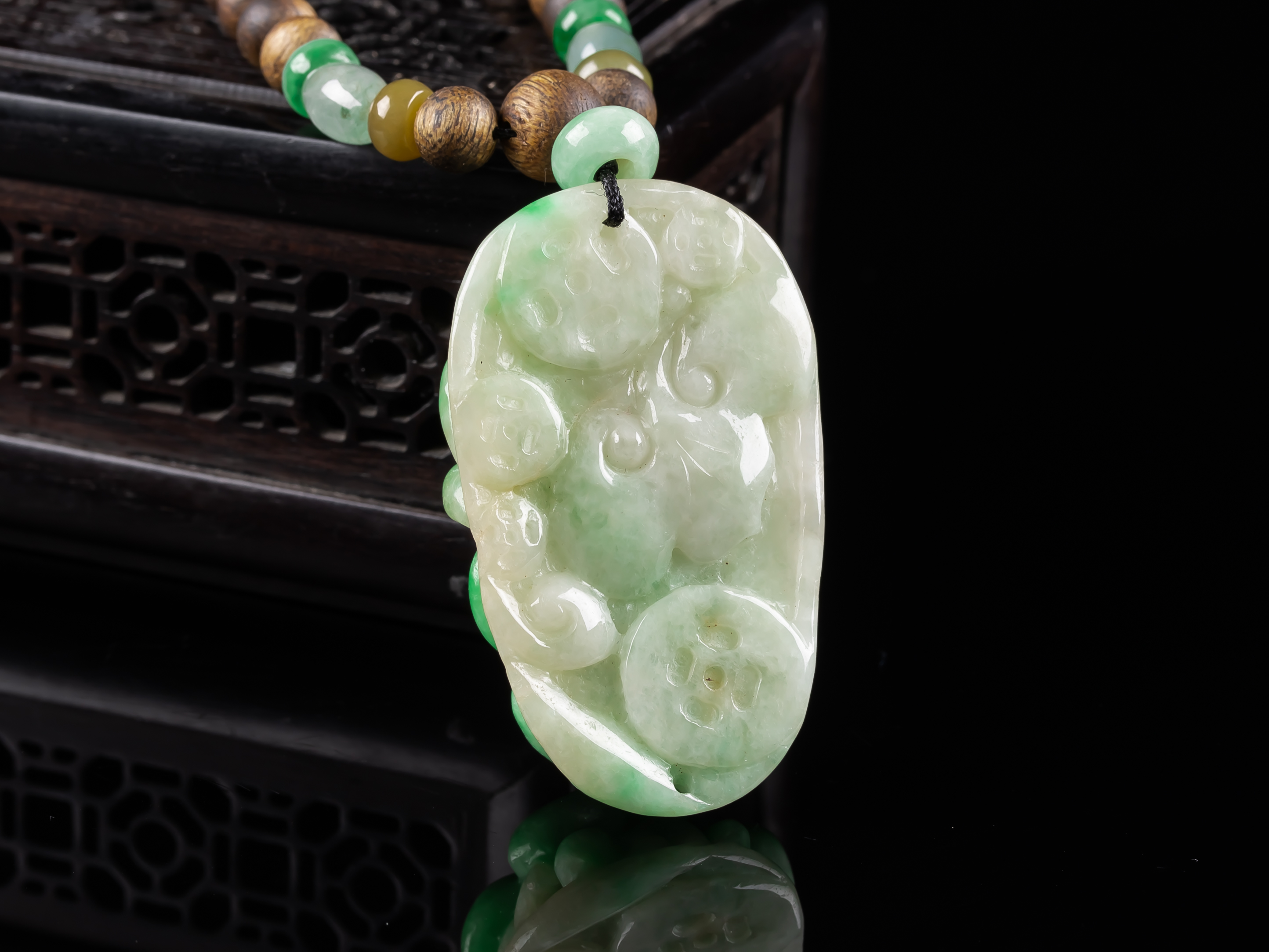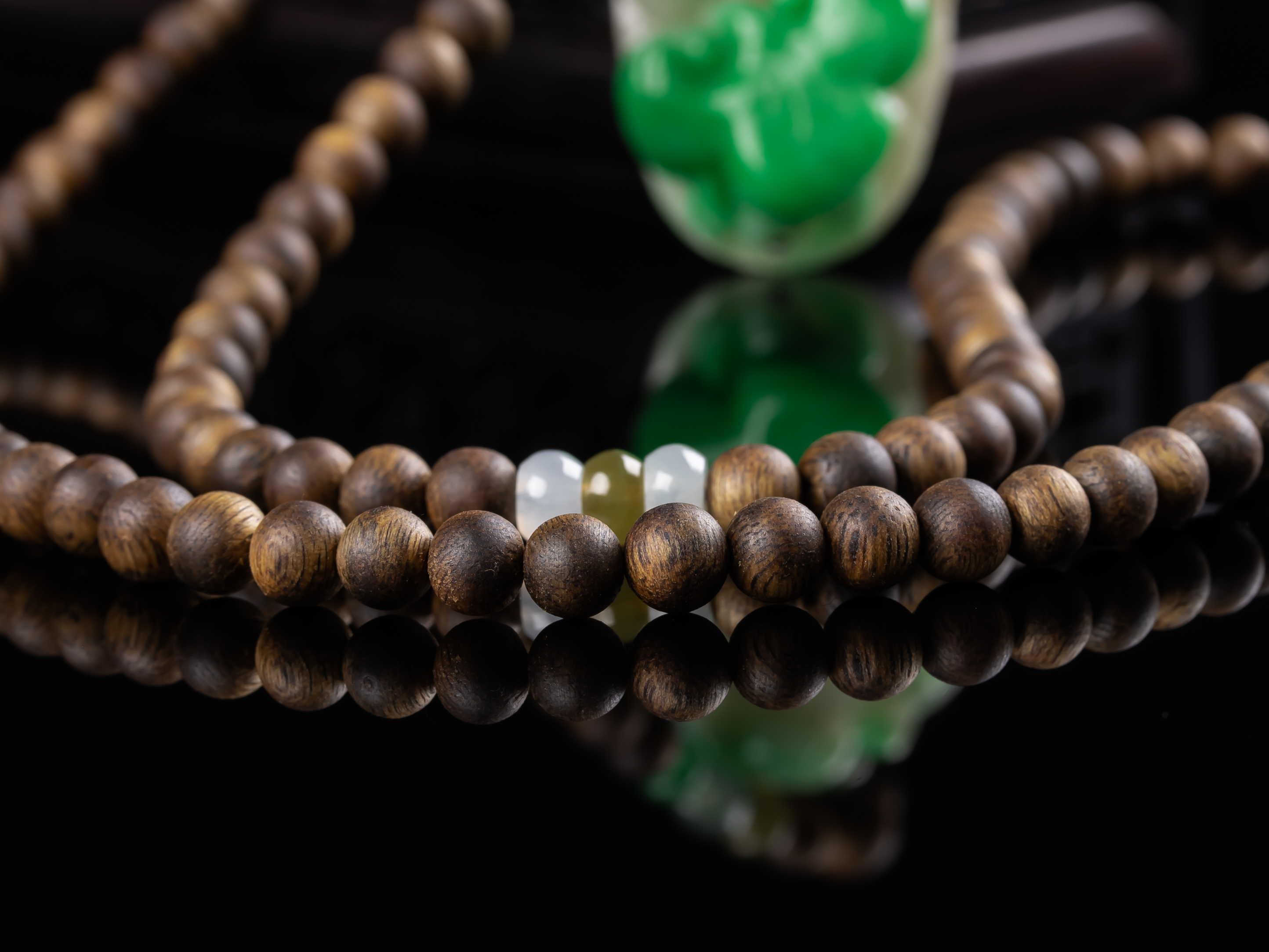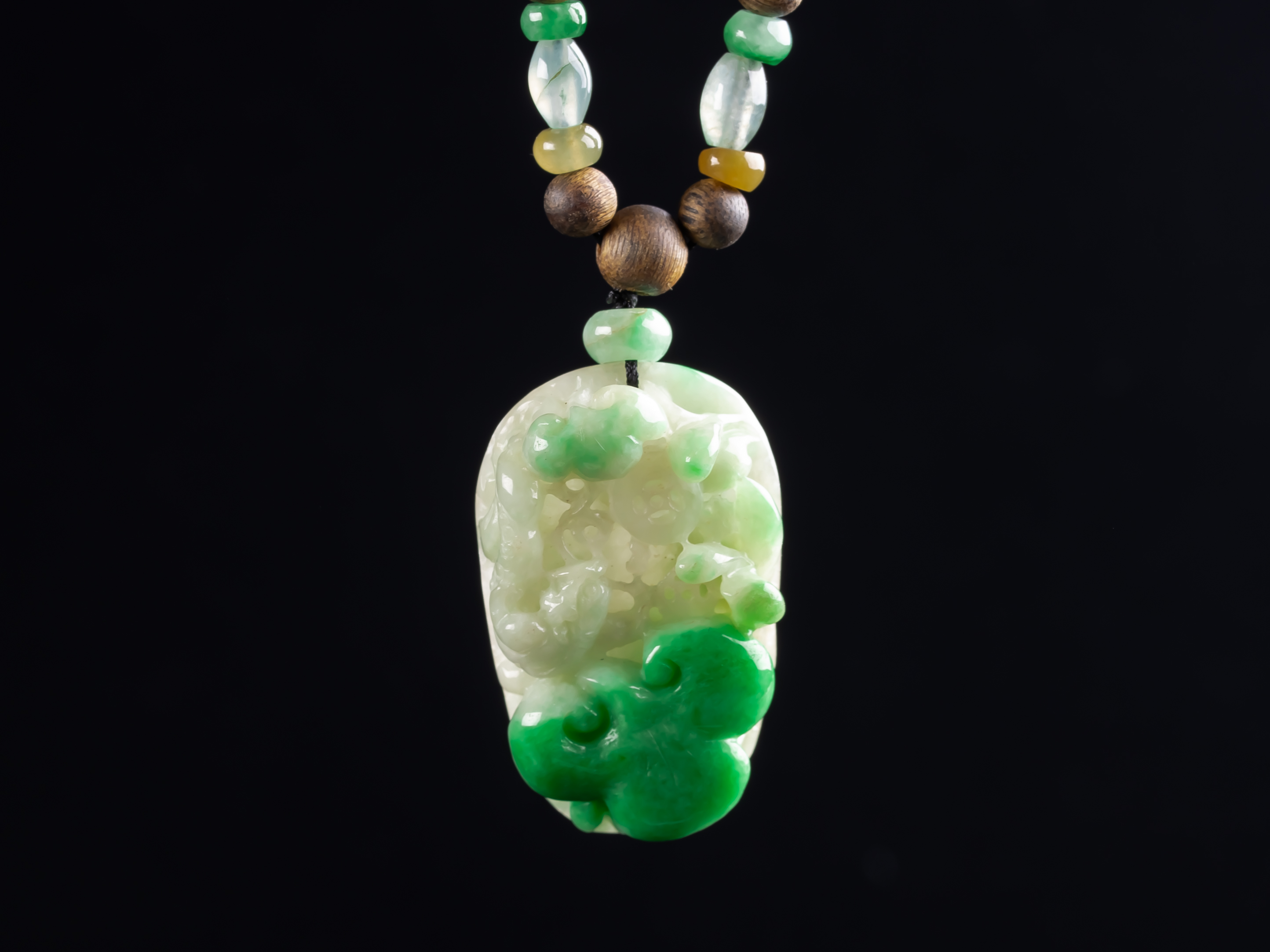 原创沉香+翡翠飘绿如意挂件,天然沉香圆珠6.4mm,原色原味,香味清甜自然,配珠:翡翠。糯种飘绿的翡翠如意,42.2*17.8*11.7mm,镂空雕刻工艺,佩戴吉祥如意,平安富贵。