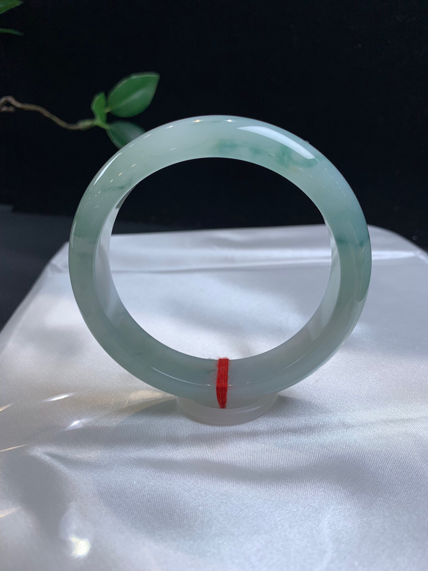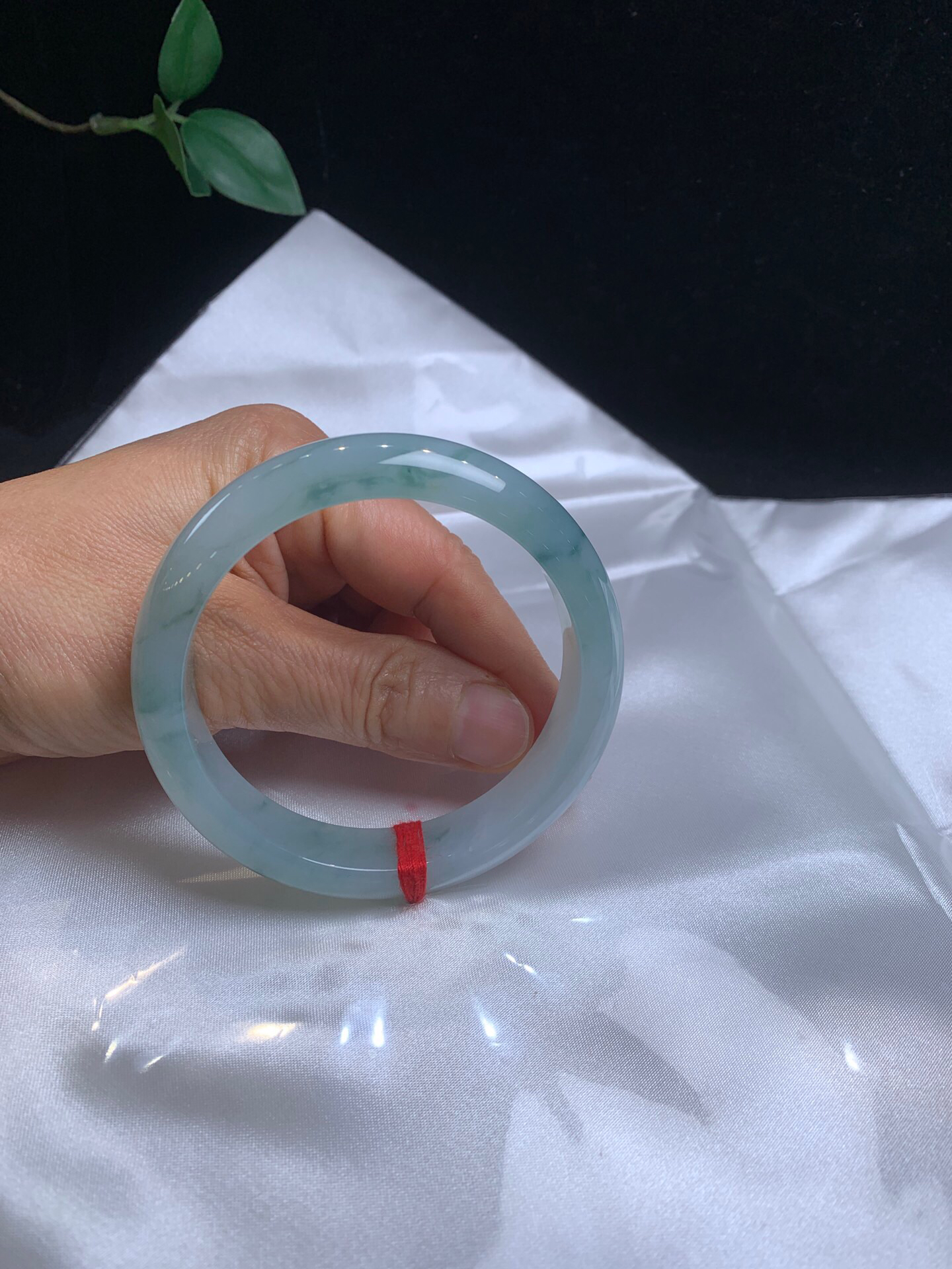 620711,55.3圈口,冰飘花正圈平安镯,老种,冰透起光,白底飘蓝花,条形秀气