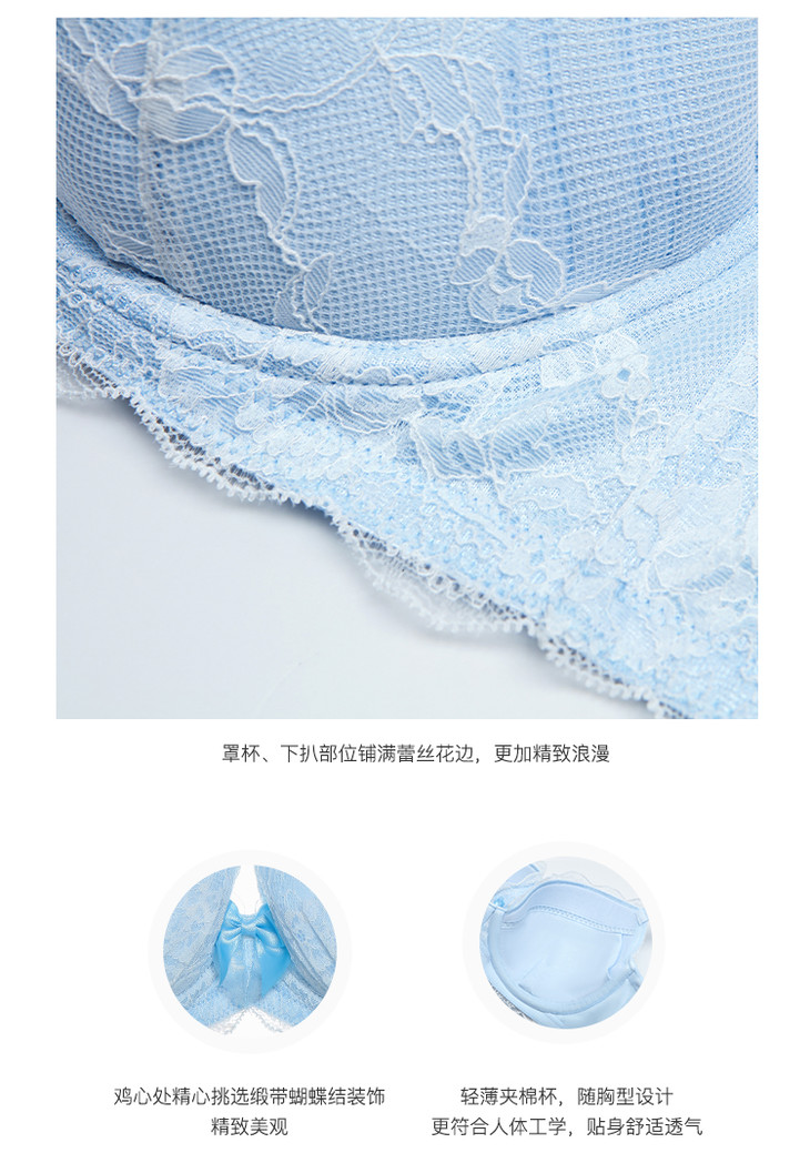 邂逅蓝白 少女蕾丝文胸大胸显小薄款夏季透气薄款内衣 奶糖派Candy La VIE