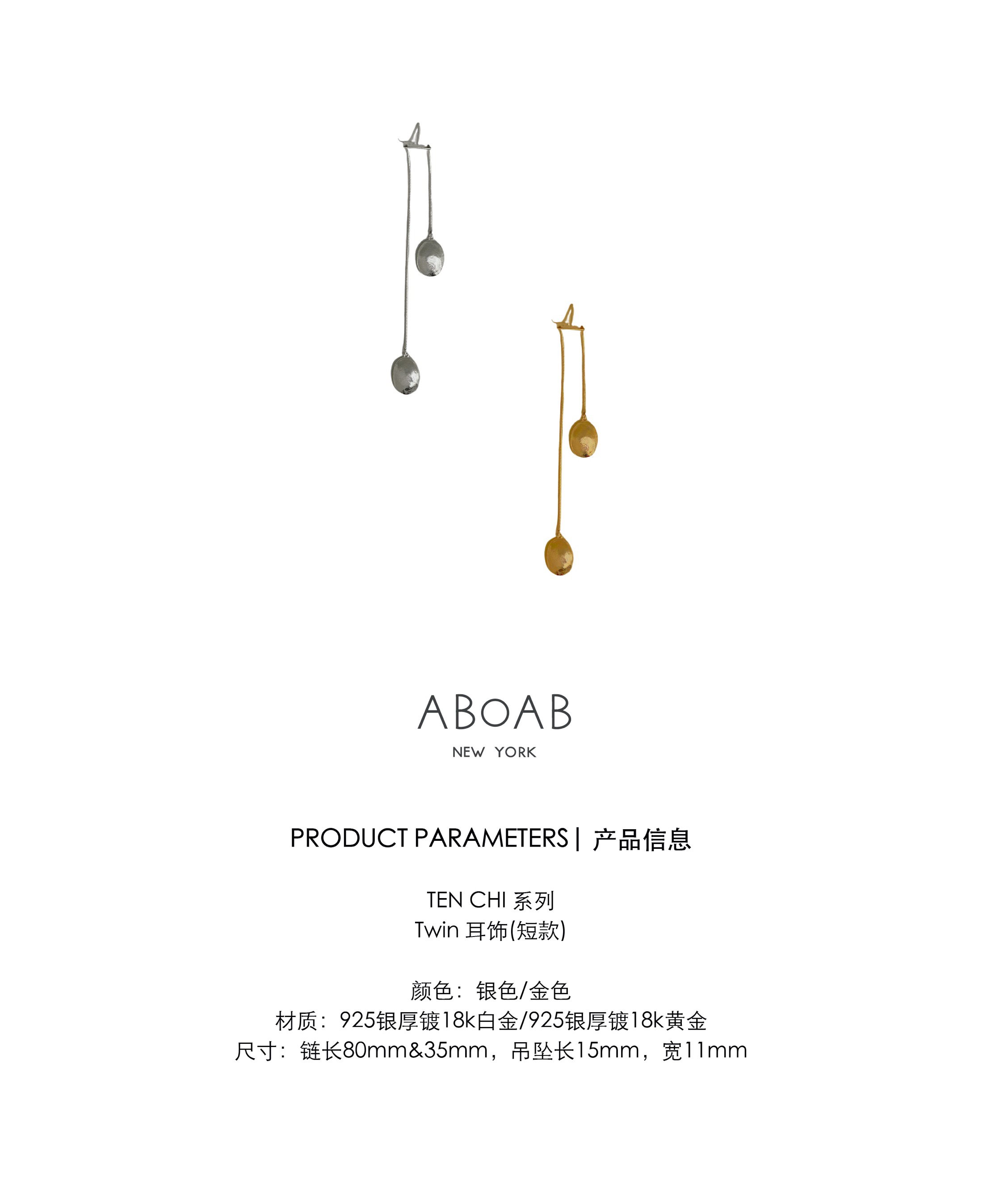 ABOAB|Short TWIN Earring [单只短耳环 金 / 银 ]【TEN CHI】