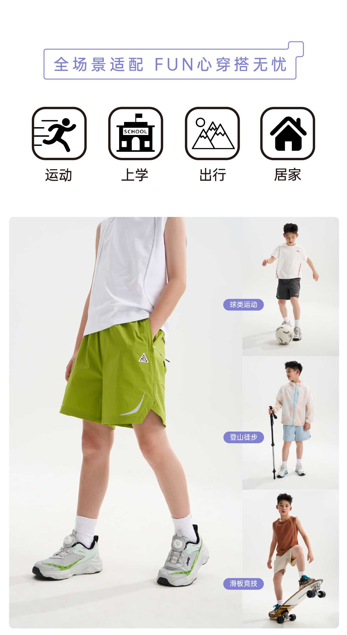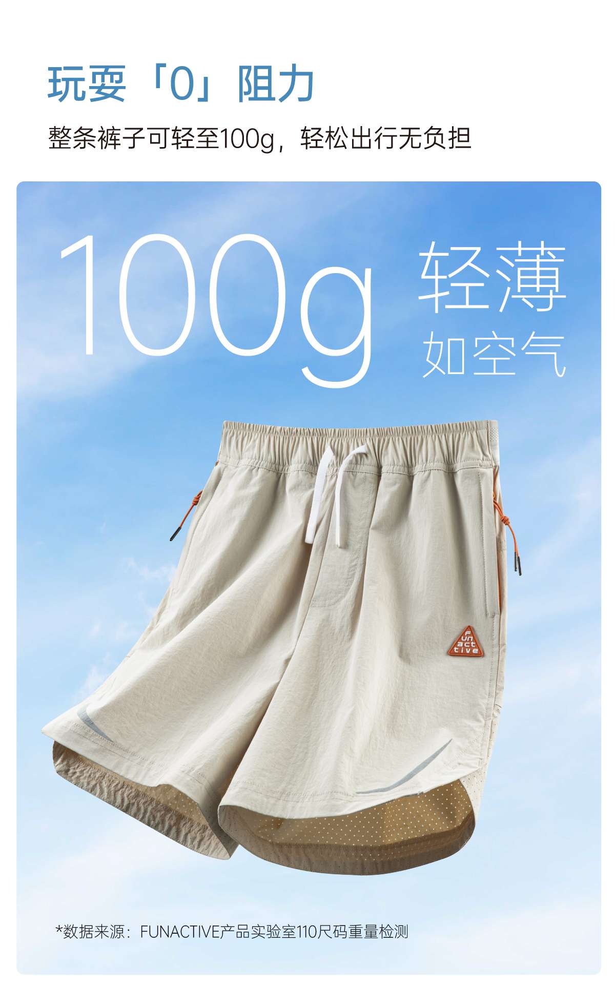 funactive男童短裤轻薄裤子儿童透气防水户外运动裤F1BK10190