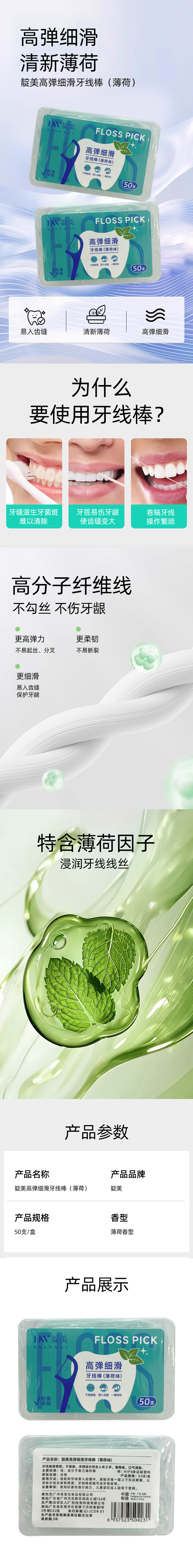 靛美高弹细滑牙线棒(薄荷)50支【21003891】