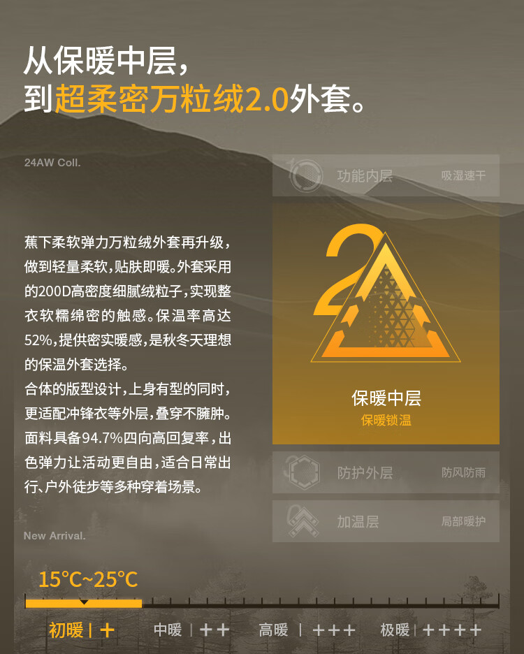 蕉下男士万粒绒外套(常规款、初暖)PO17424