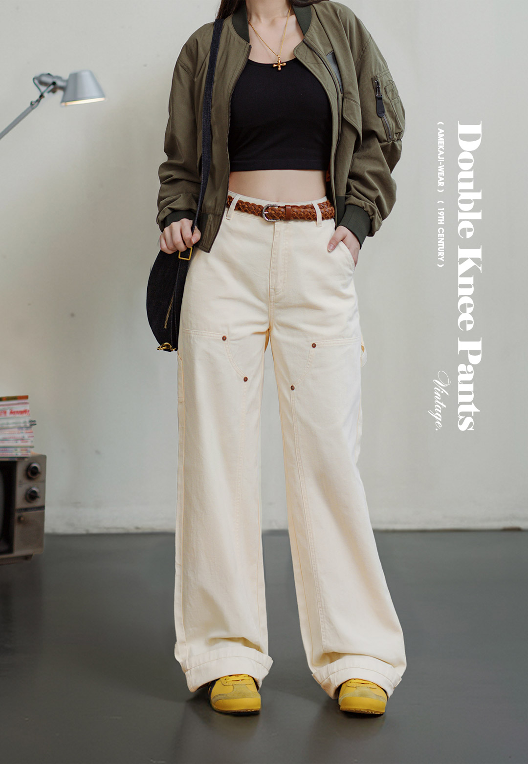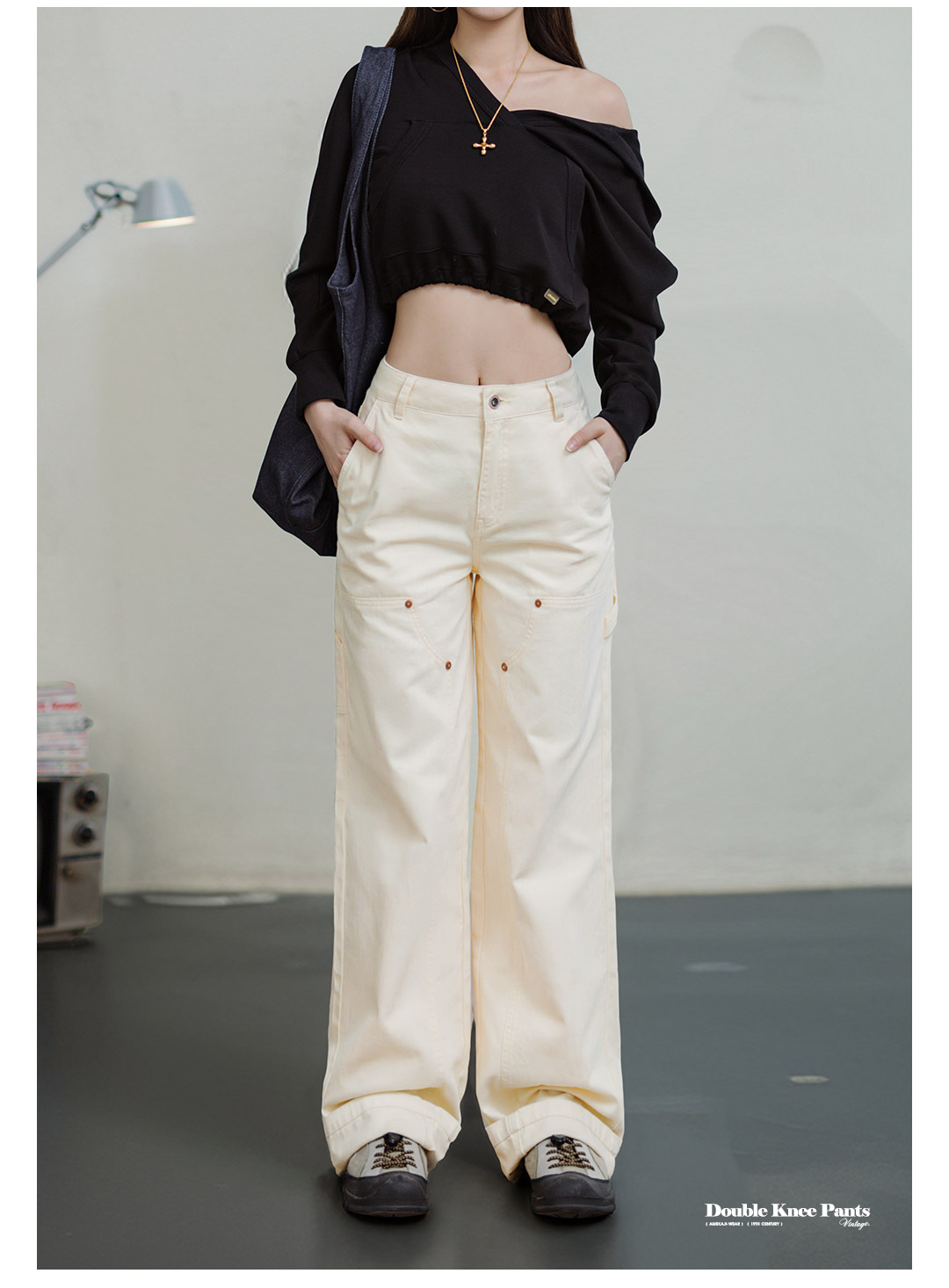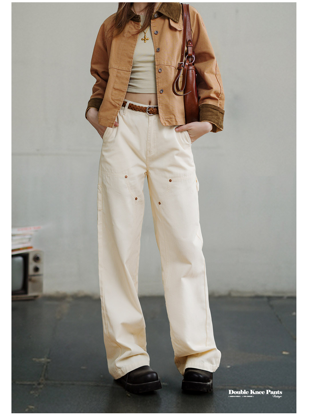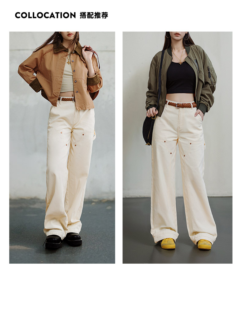 马登美式工装裤百搭纯棉双膝伐木裤复古街头休闲长裤直筒裤春秋女