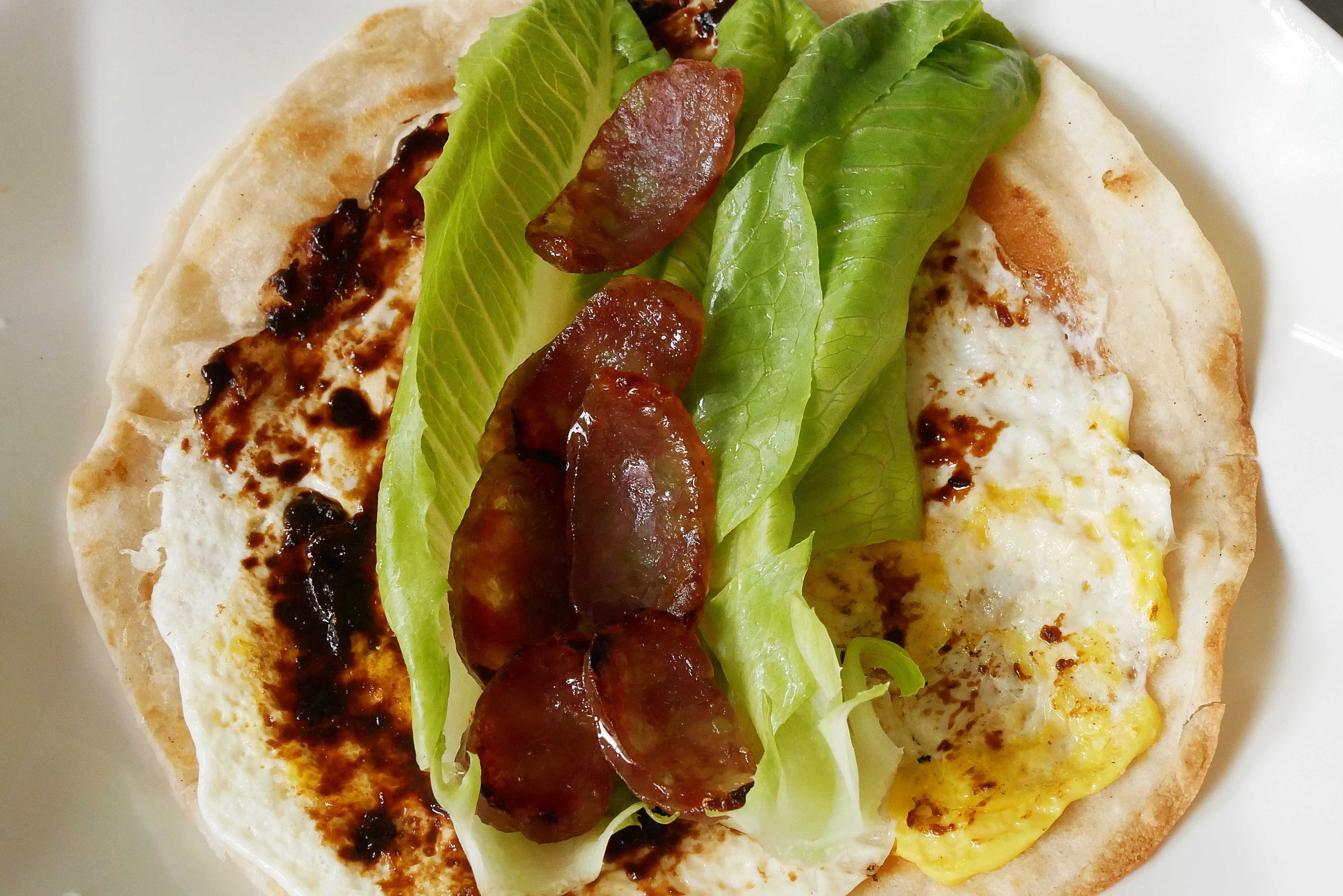 早餐如果来不及做饭,那么做个手抓饼将是一个简单的快手餐,主食、蛋、菜、肉都有了