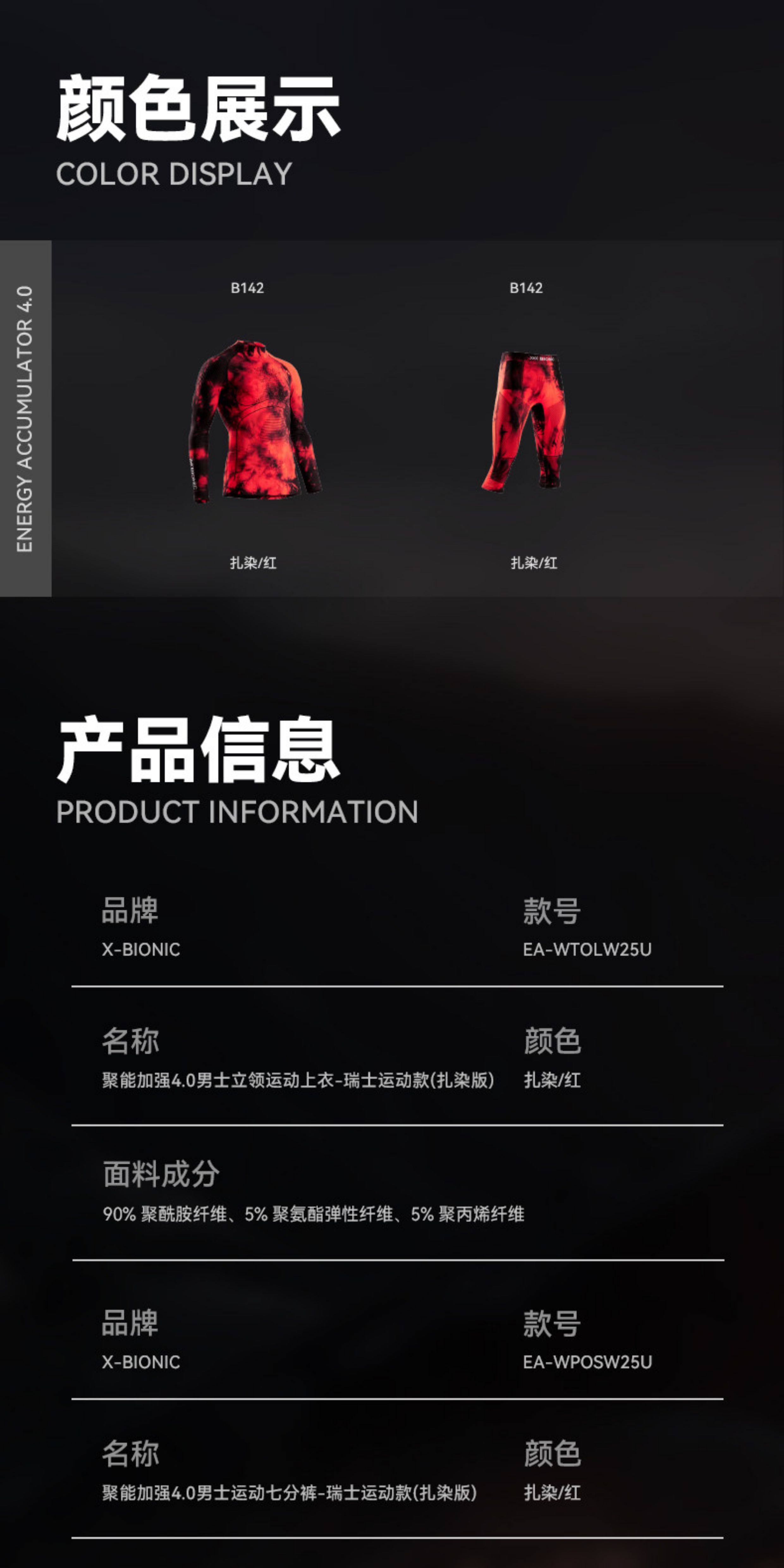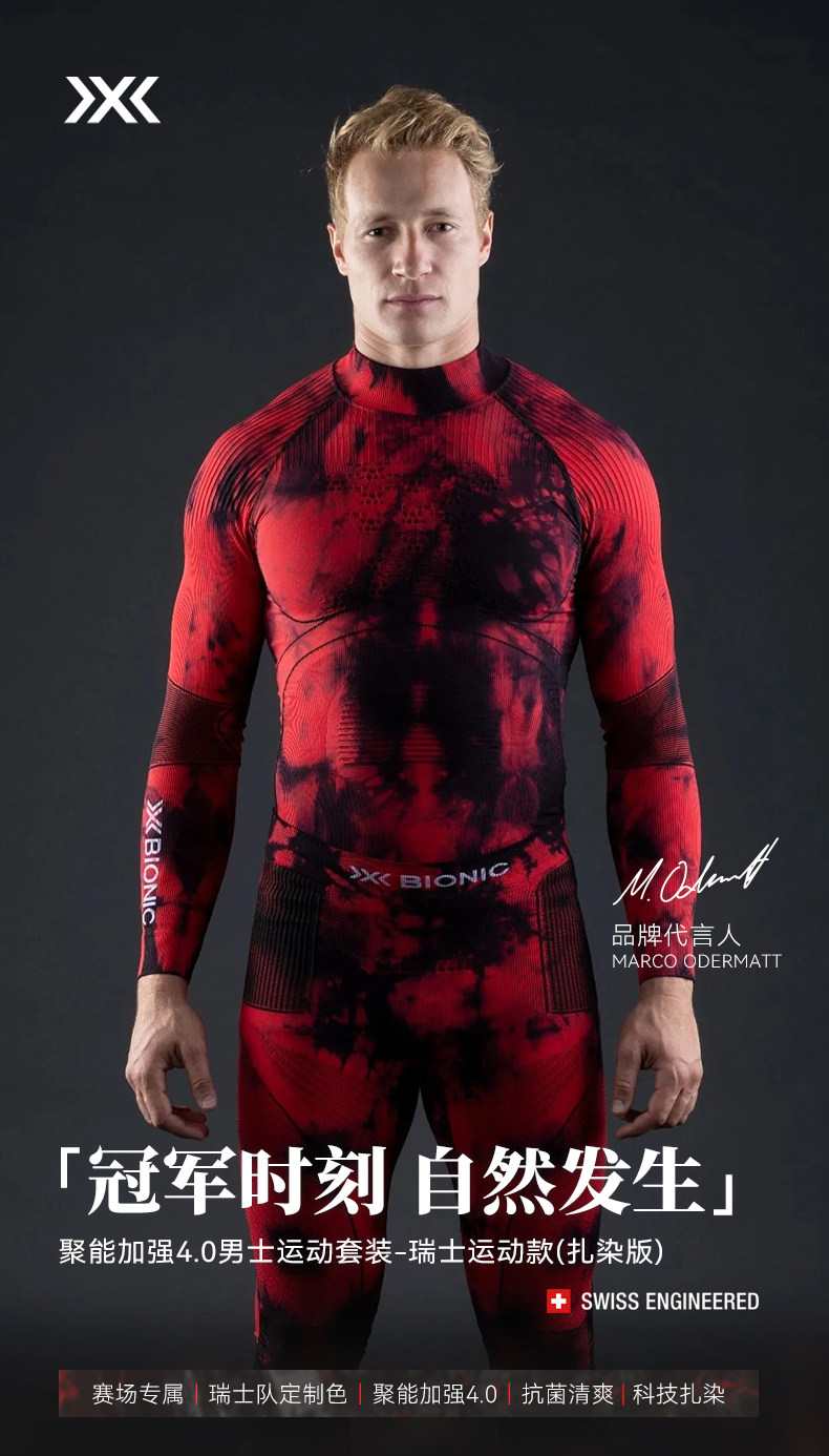 X-BIONIC 聚能加强4.0男士滑雪压缩衣套装(扎染版)瑞士运动款 WTOLW25U