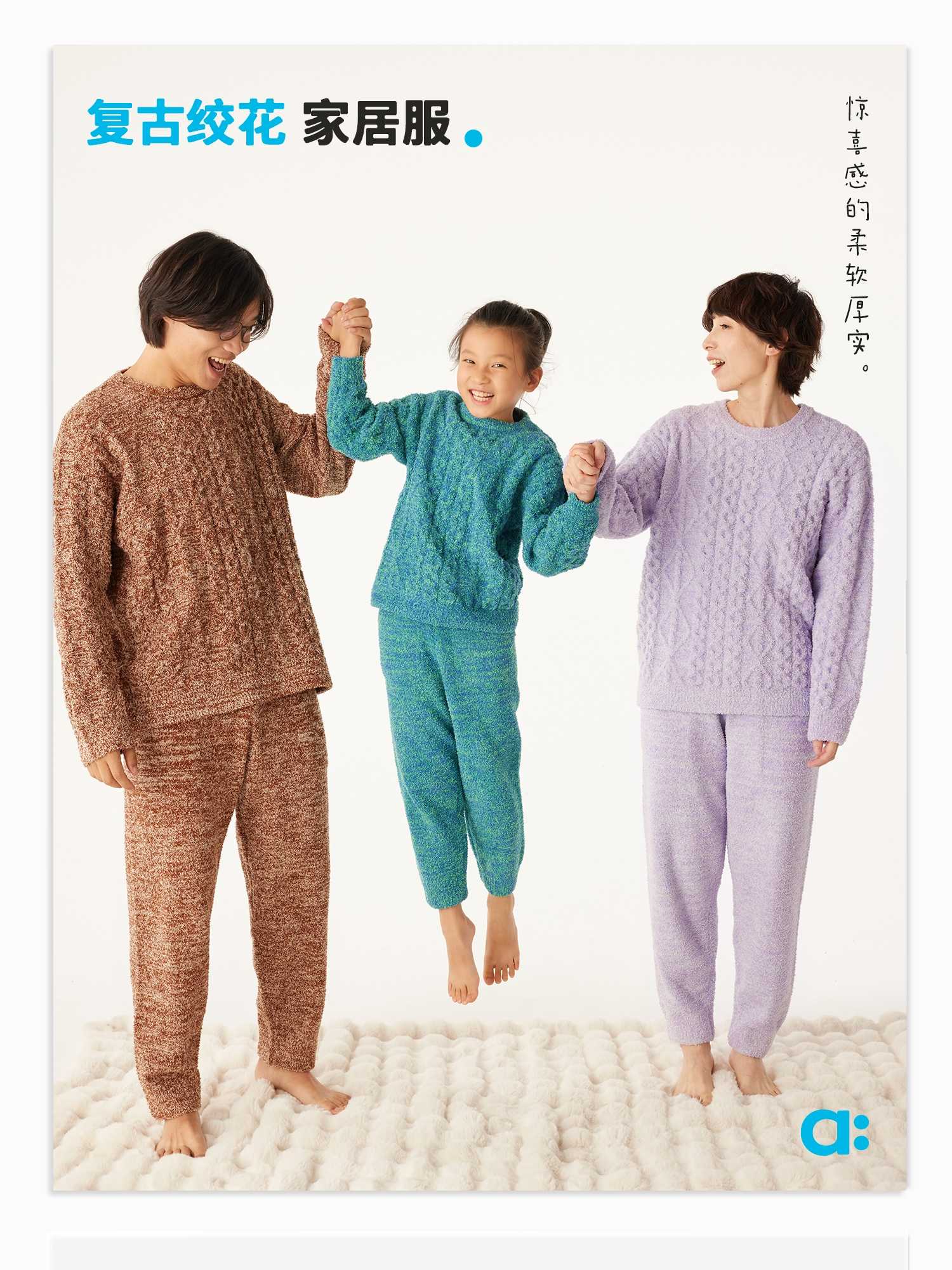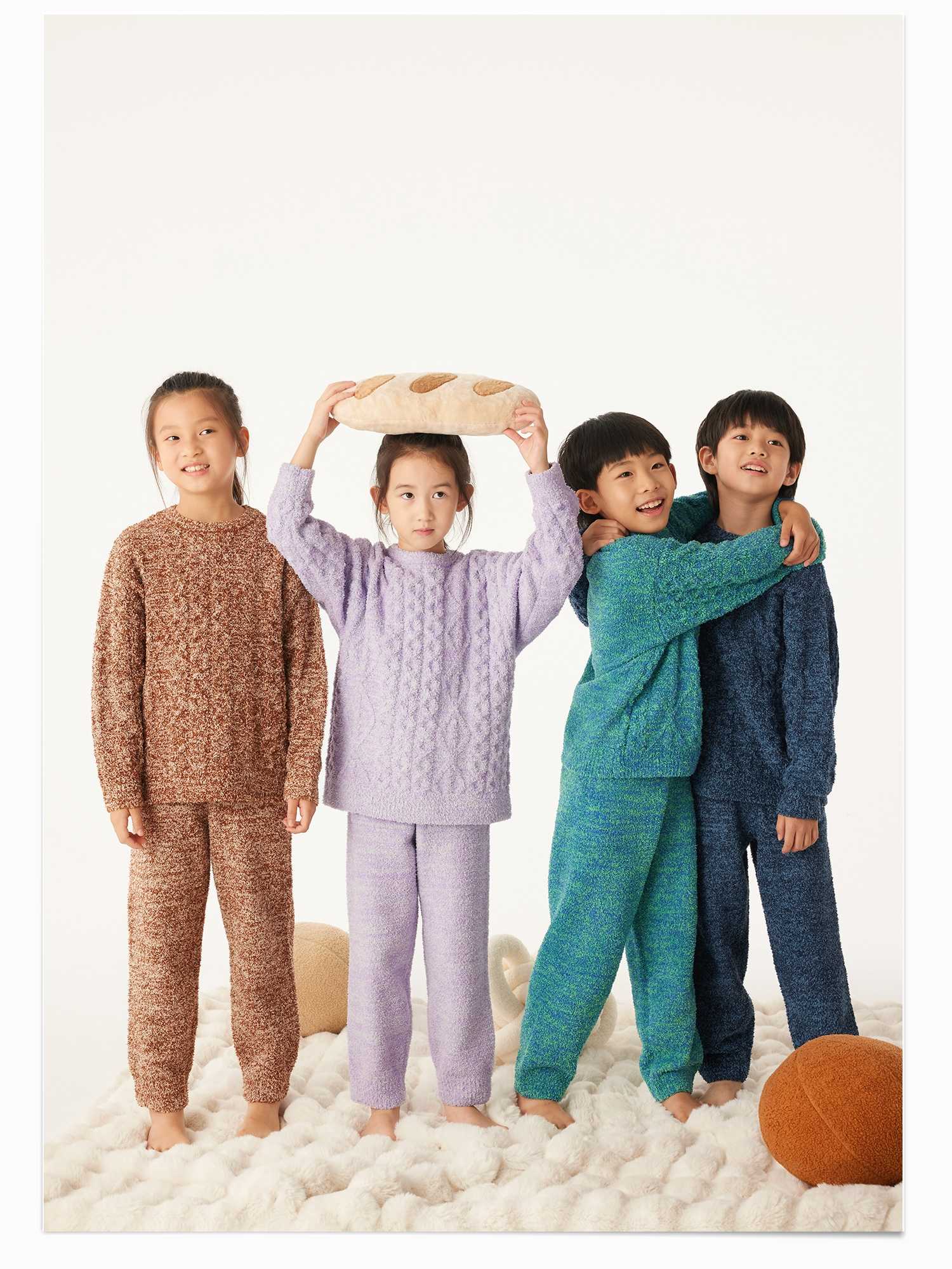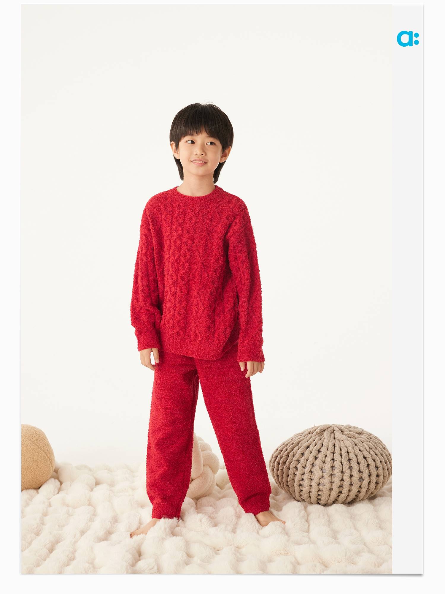 【折扣】allblu幼岚【复古绞花】儿童家居服睡衣女童男童24冬新款套头套装