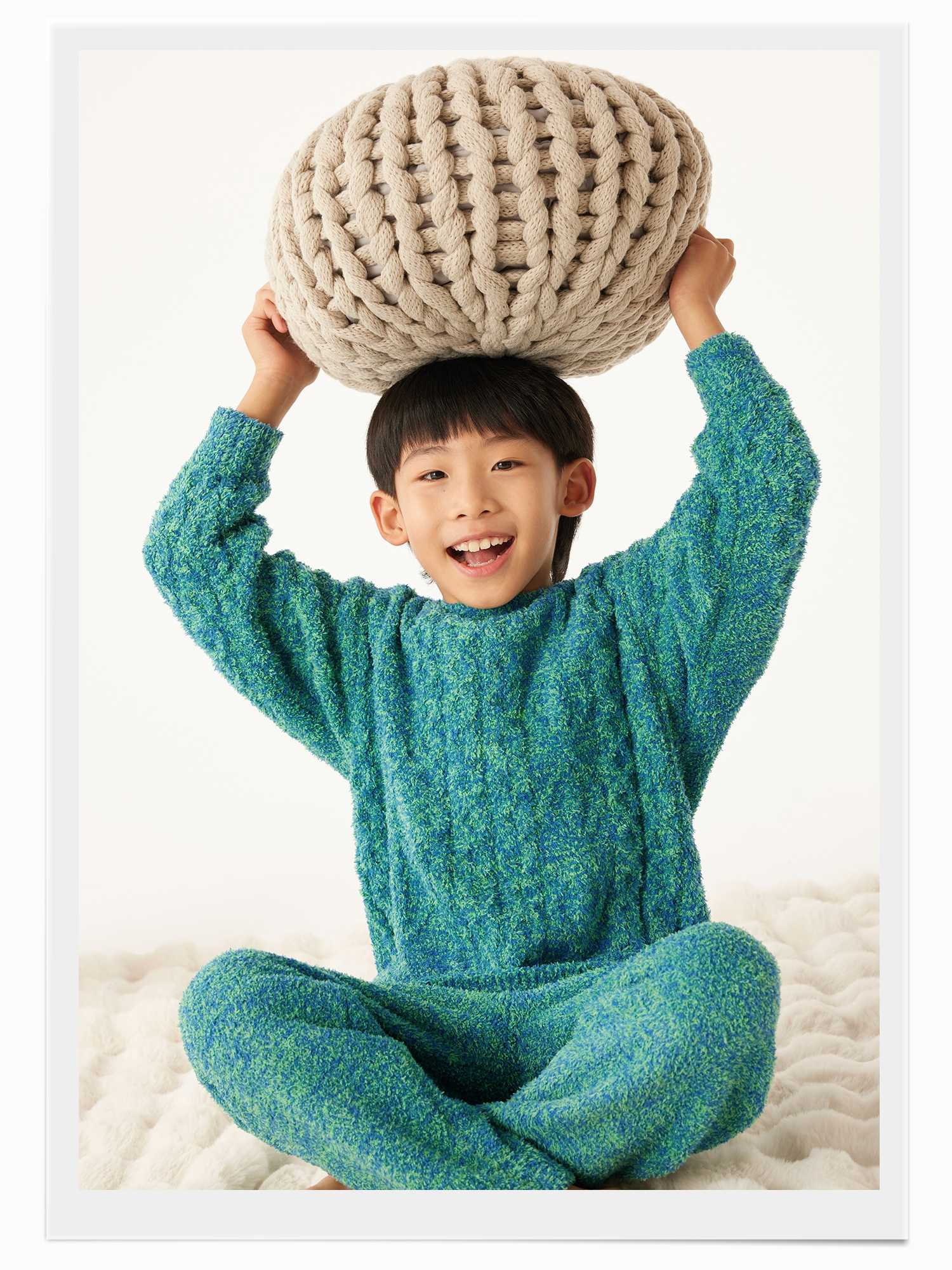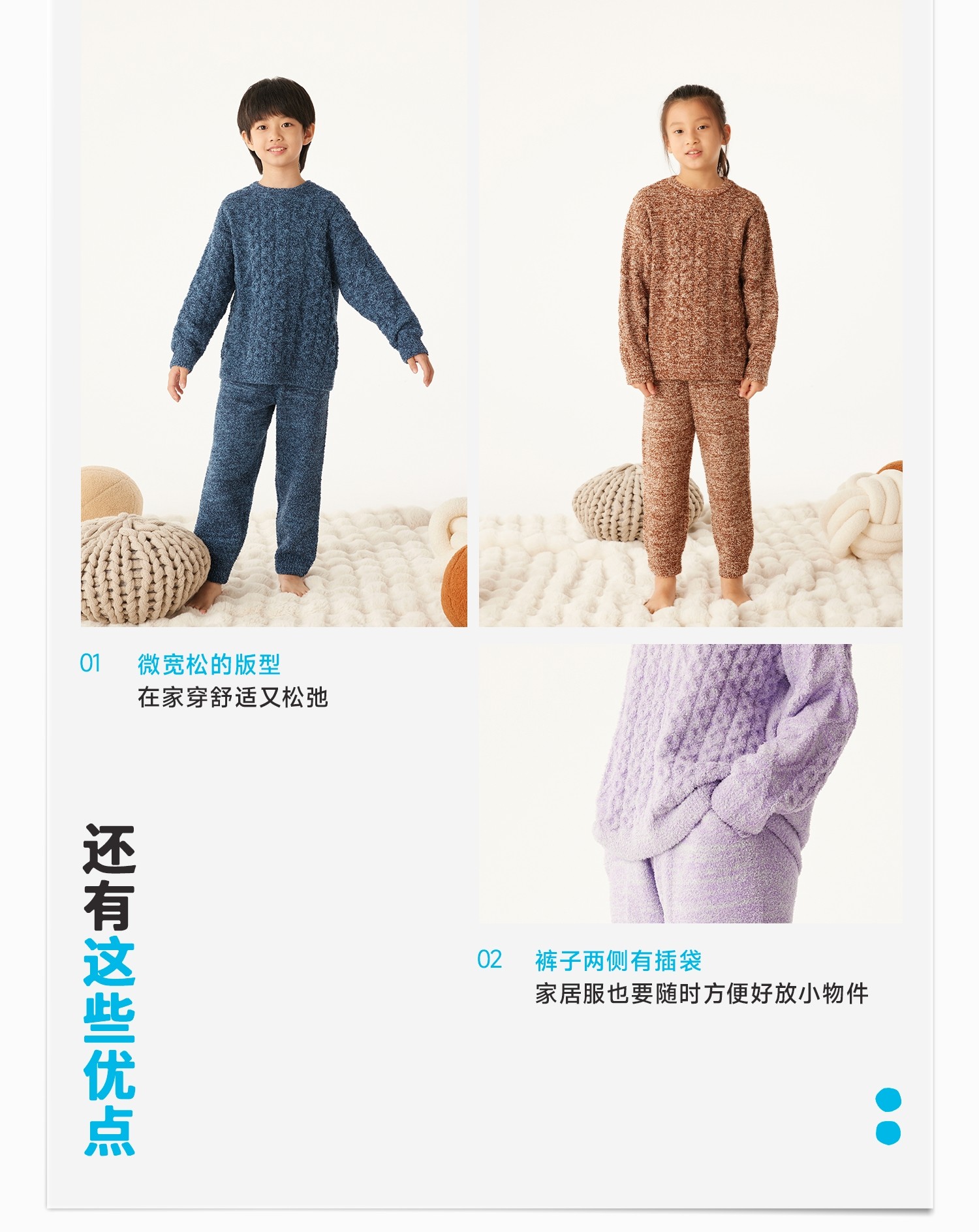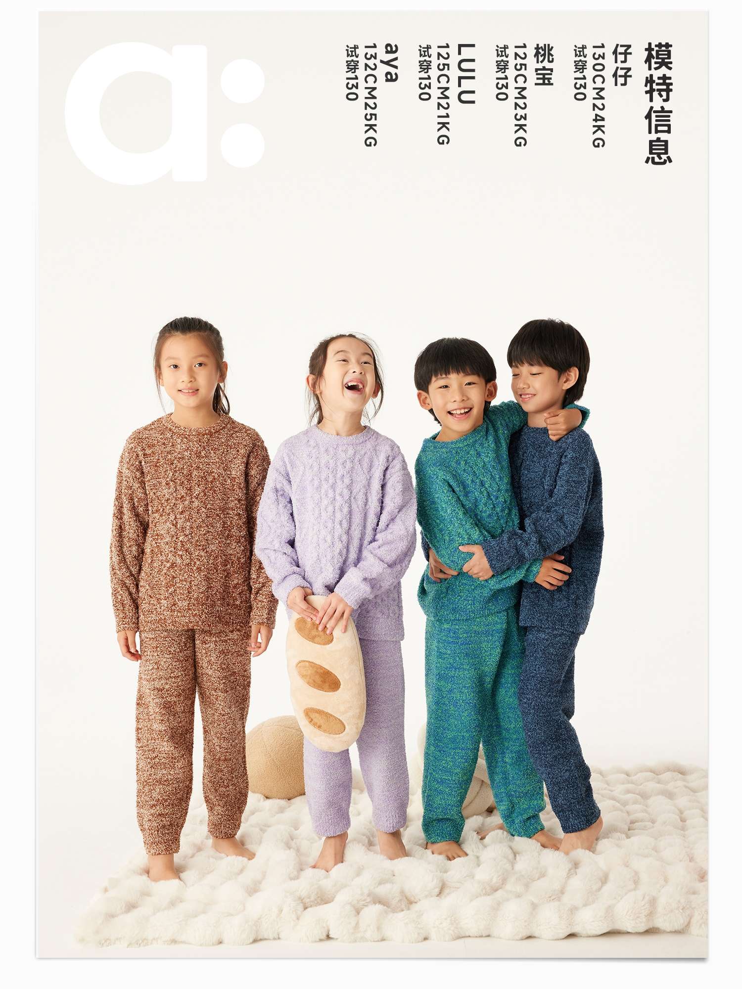 【折扣】allblu幼岚【复古绞花】儿童家居服睡衣女童男童24冬新款套头套装