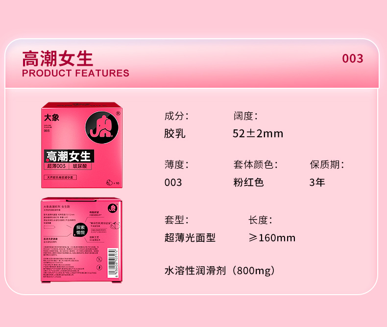 大象高潮女生系列0.03超薄玻尿酸安全套