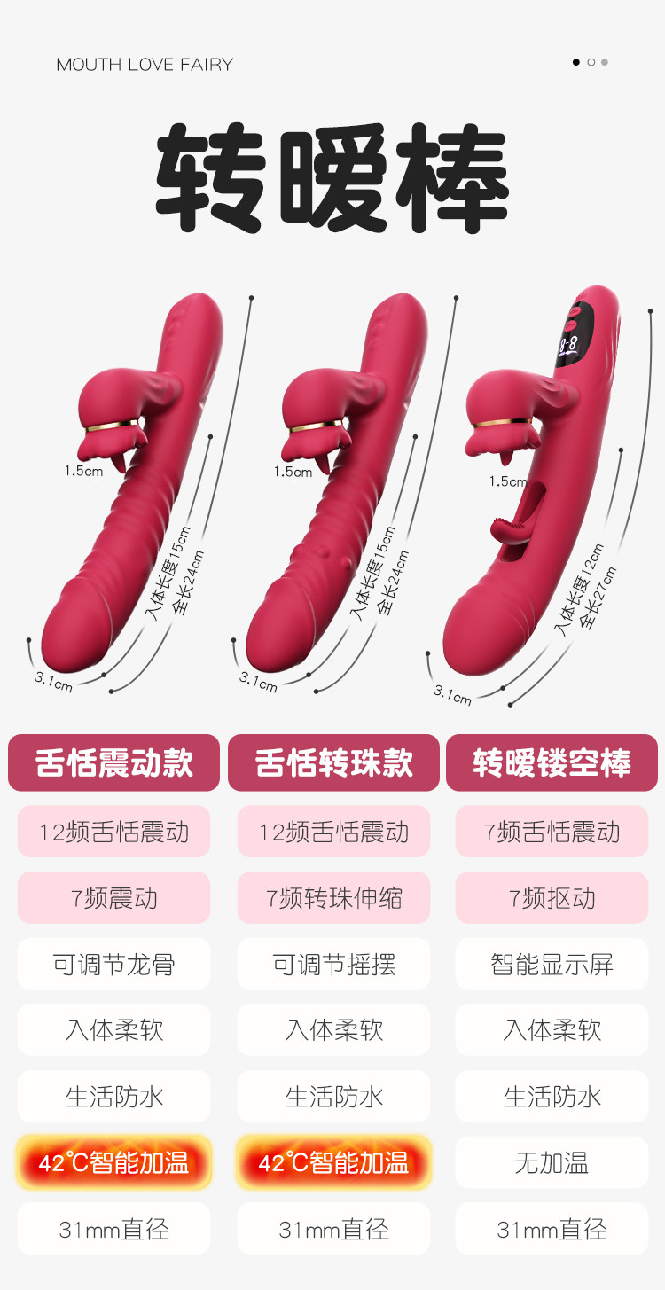 谜姬 转暖转珠棒转珠伸缩加温舌舔震动