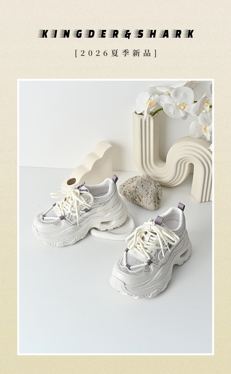 经典鲨2026年夏专柜新品韩版时尚薄款透气厚底显高老爹鞋女KW160-629131