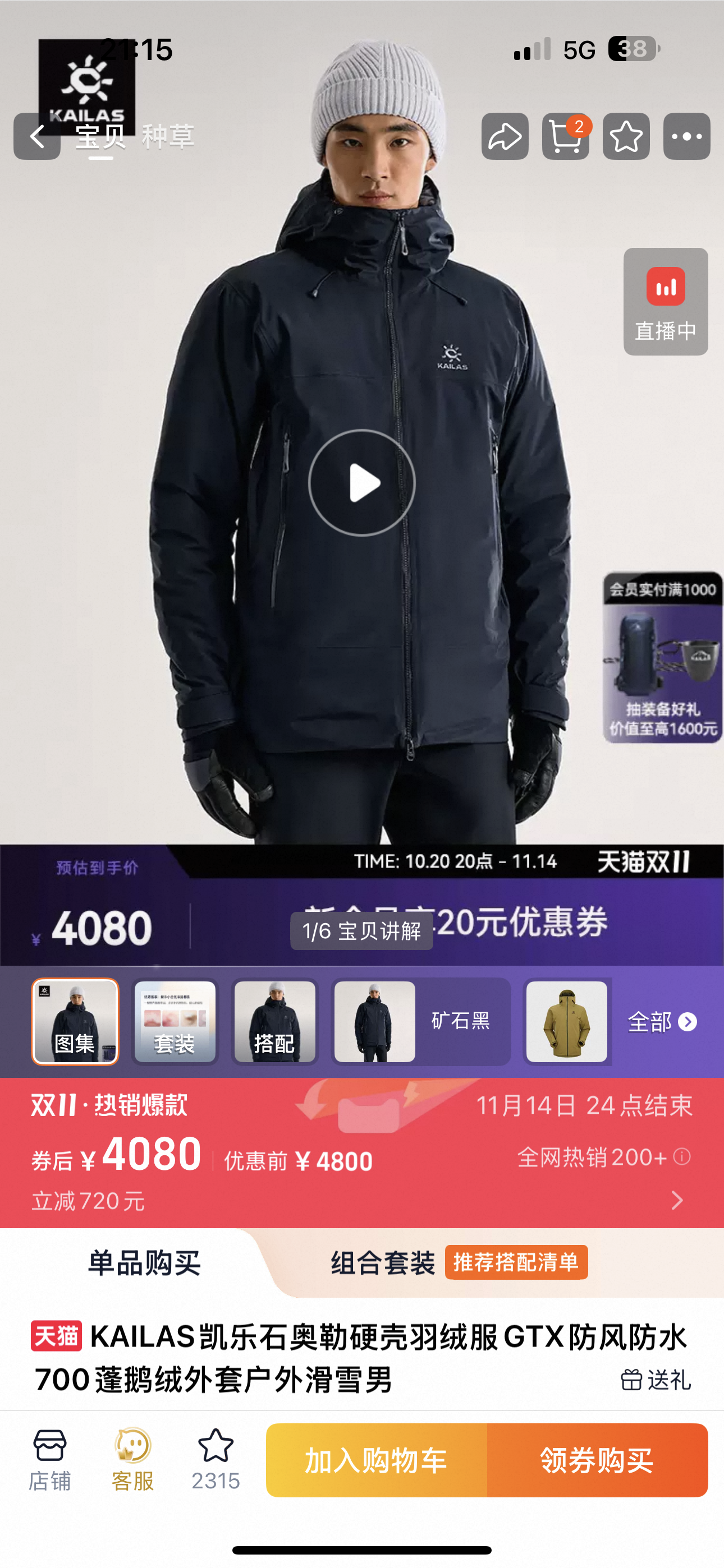 毒家! 威海产,凯乐石(KAILAS)奥勒系列700蓬鸭绒户外滑雪羽绒服 奥勒羽绒服