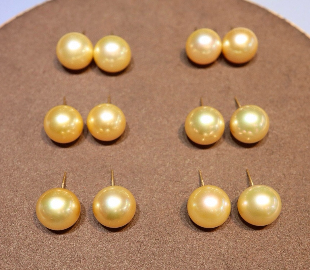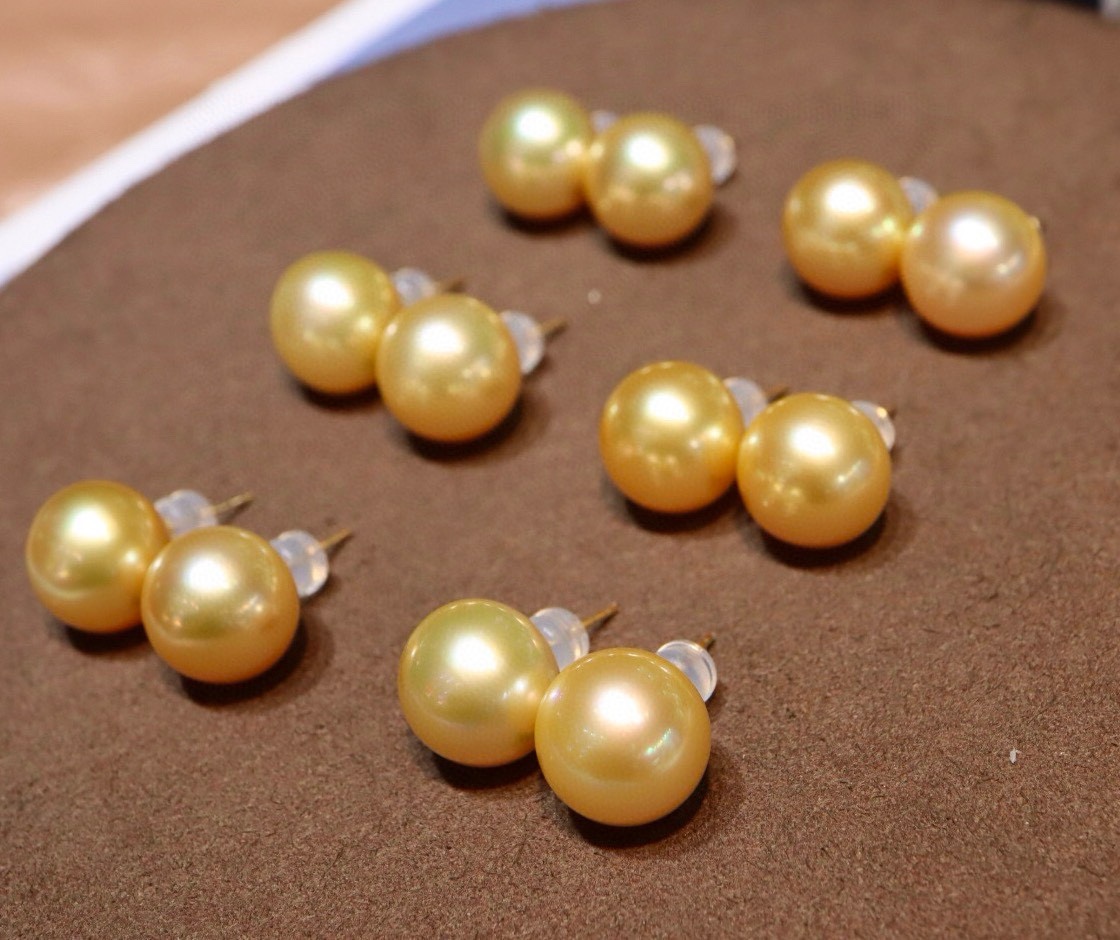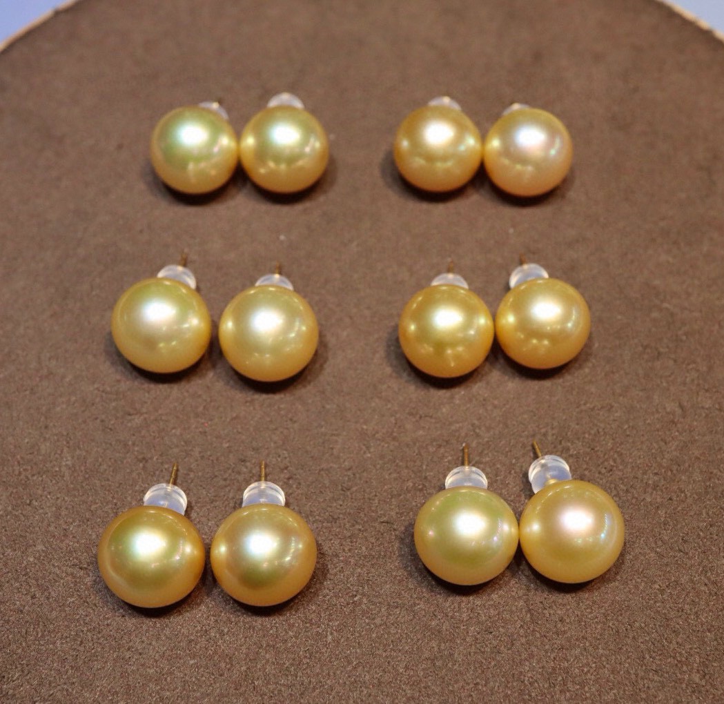D519036 天然南洋金珍珠耳钉 18k金耳针款,珠子近圆顶级珠光表皮非常细腻光滑,完美度也高,关键这种形状上耳特别服贴 大小12-13mm 特价🉐2380/对