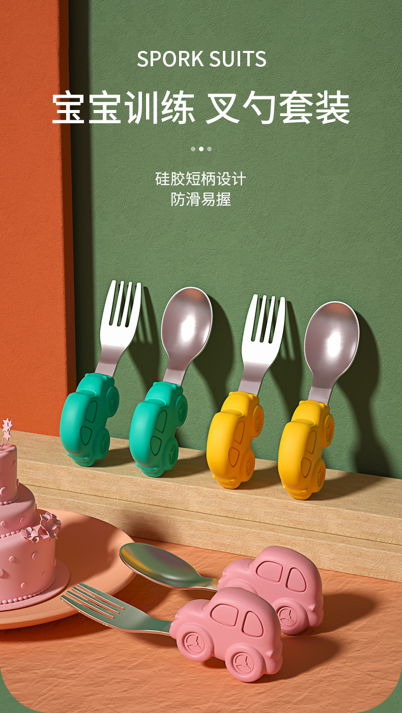 【儿童餐具】婴幼儿童餐具套装小宝宝餐盘辅食碗勺叉吃饭训练勺子