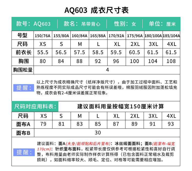 裁缝学苑AQ603吊带背心式文胸纸样女装带胸垫内搭打底上衣美背样板