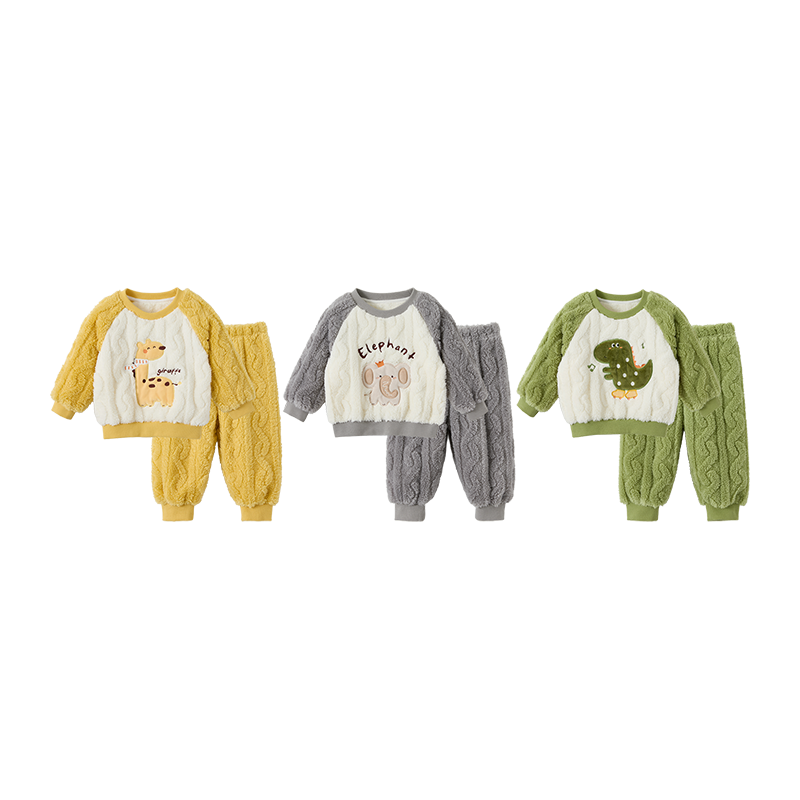 怡比萌宠动物园家居长袖圆领套装HY25WIN050晨灰/中黄/中绿/HY25WIN051紫90#-140#