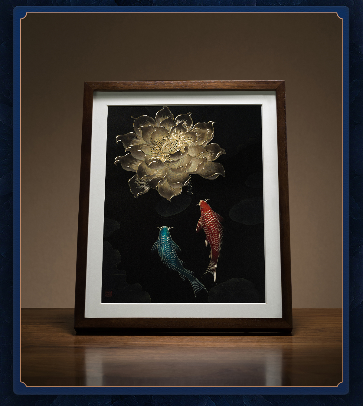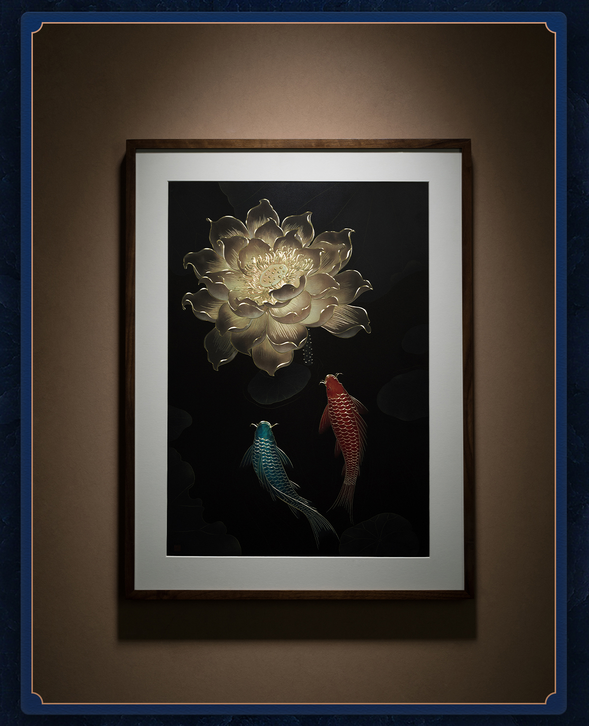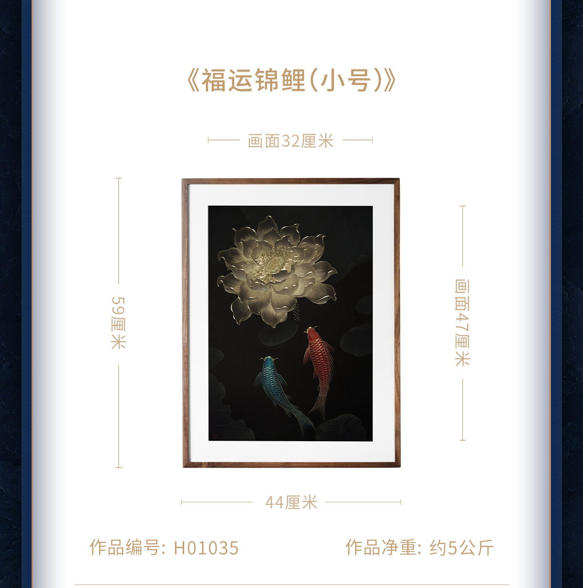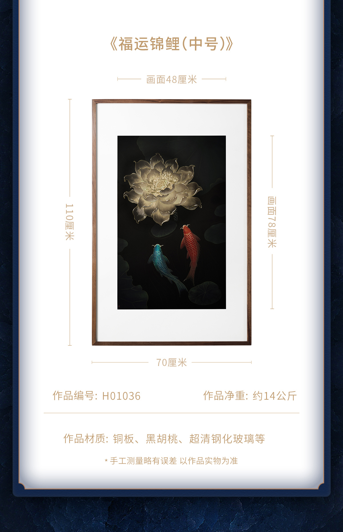 铜师傅 手工錾刻 铜雕画《福运锦鲤》客厅玄关沙发背景墙装饰画