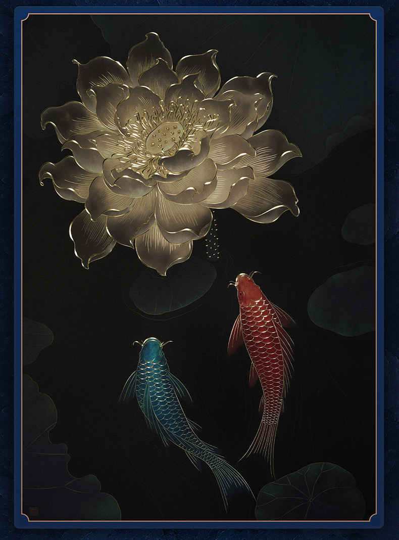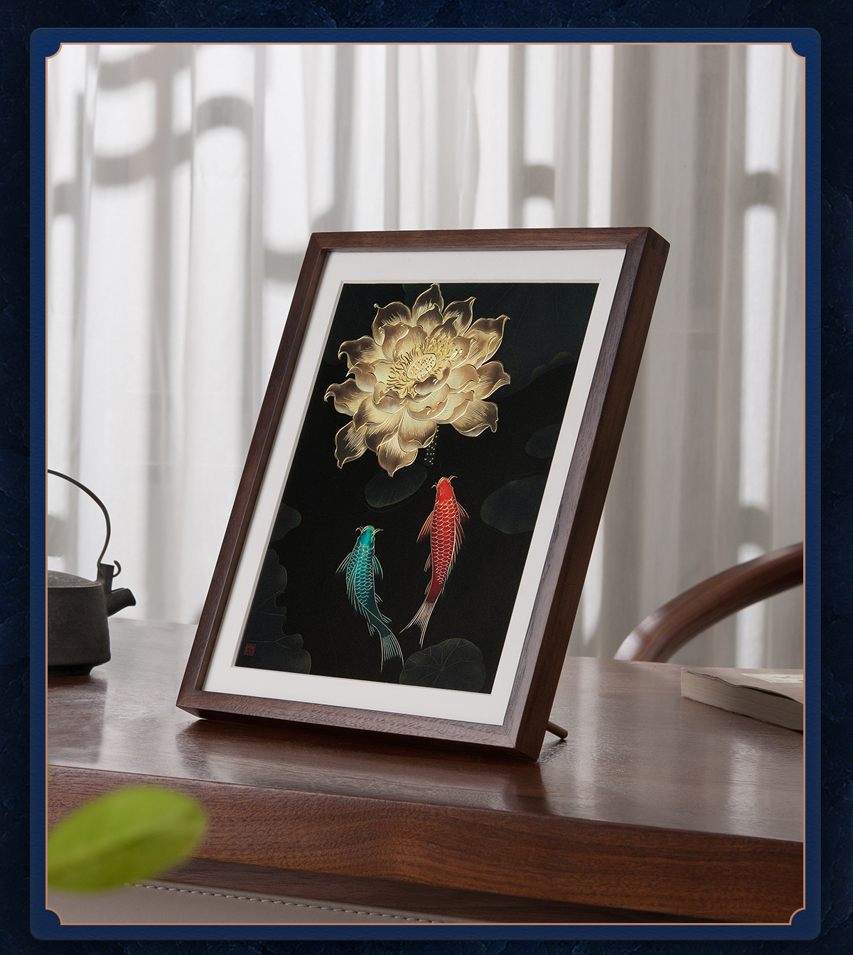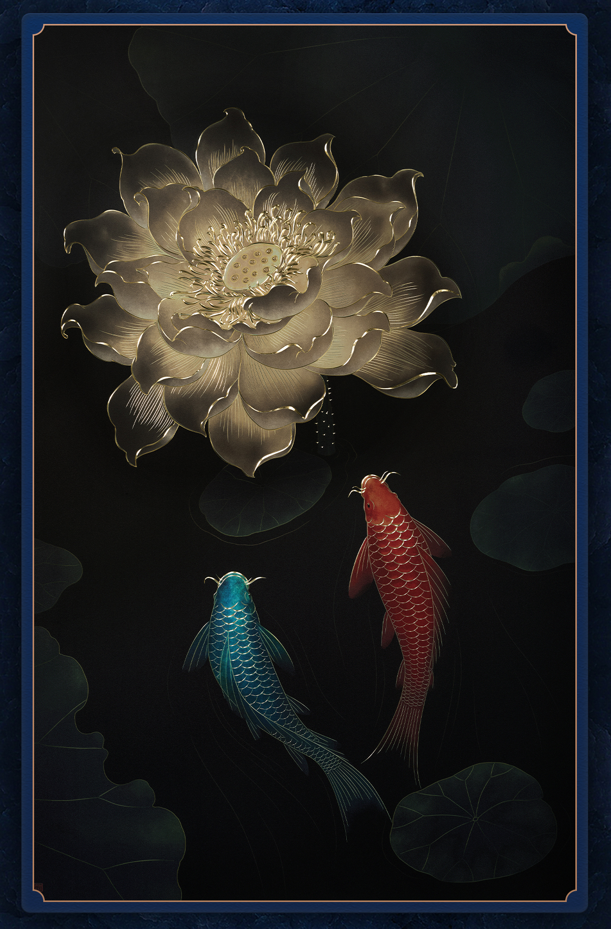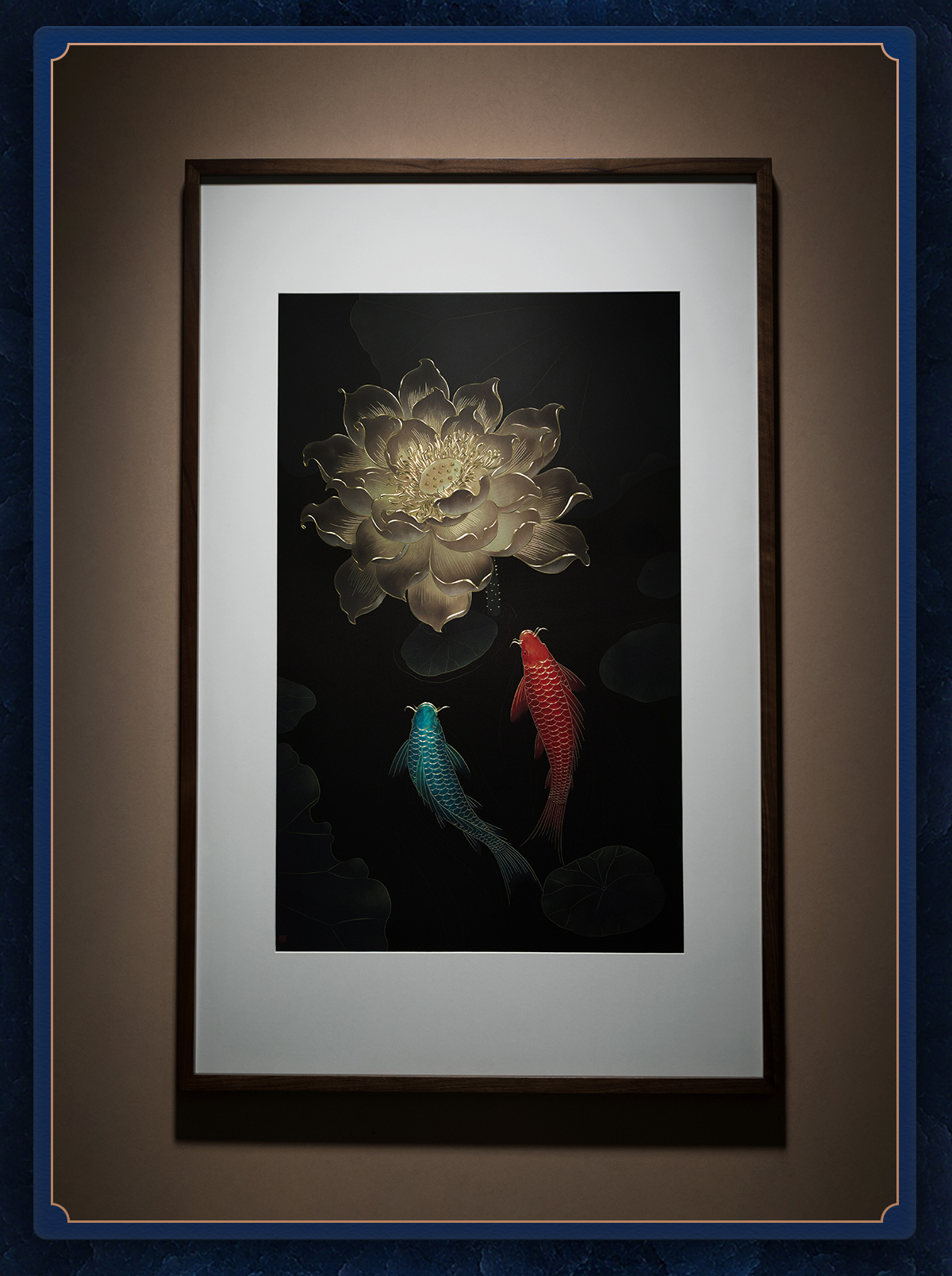 铜师傅 手工錾刻 铜雕画《福运锦鲤》客厅玄关沙发背景墙装饰画