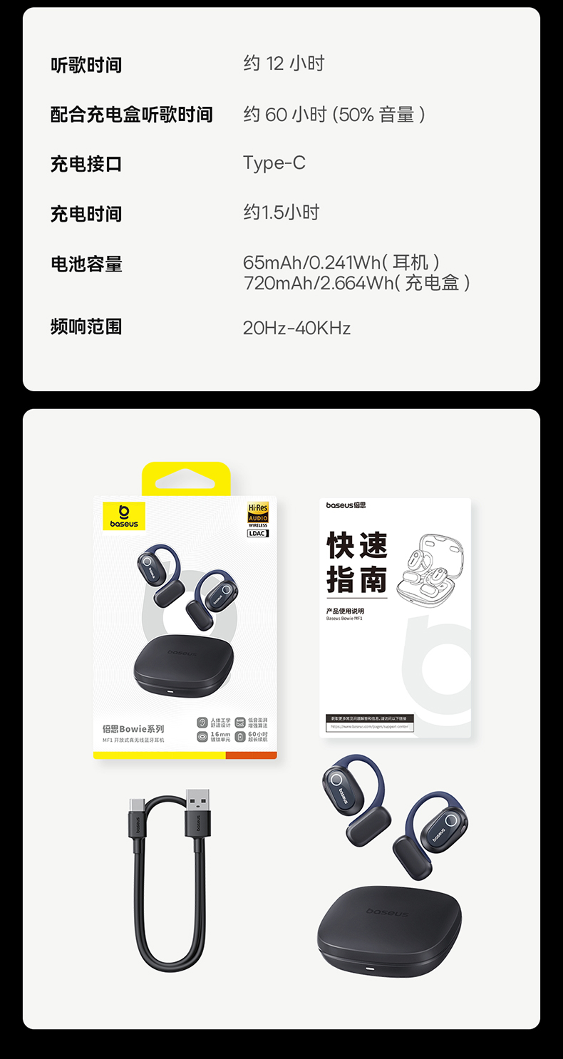 倍思 Bowie系列 MF1 开放式真无线蓝牙耳机