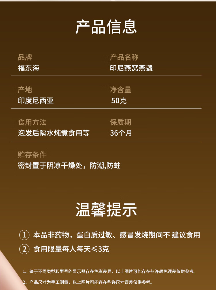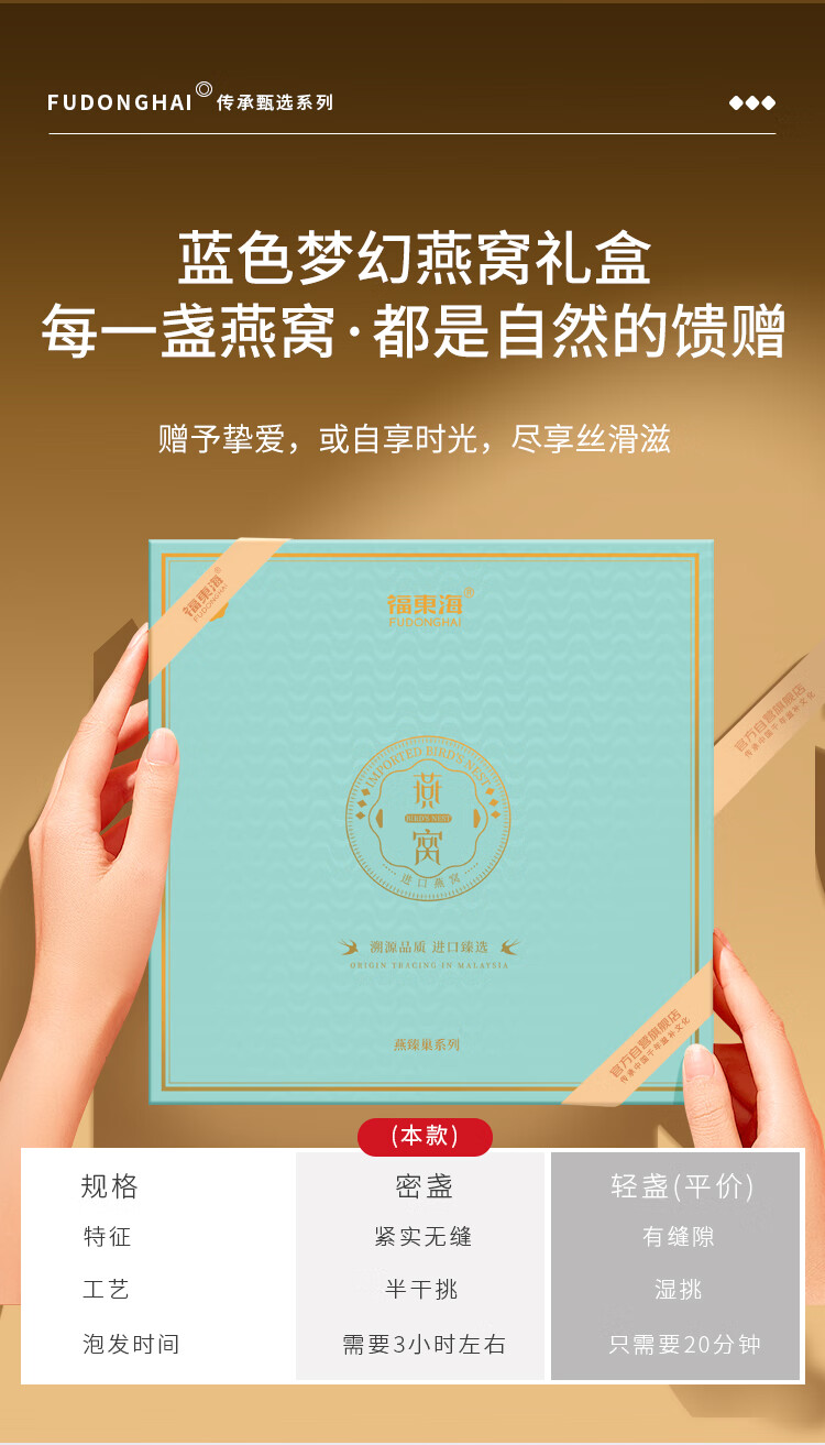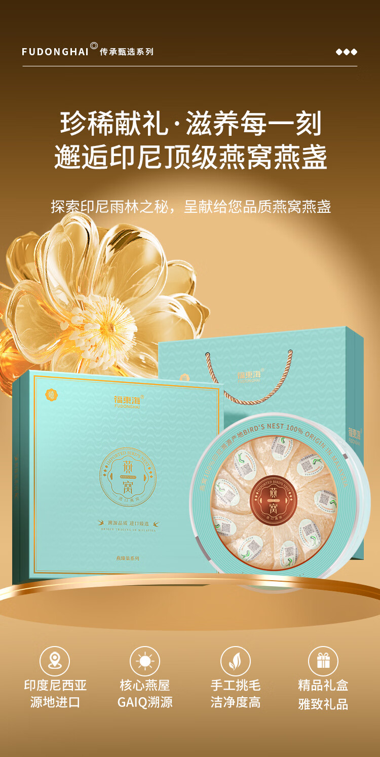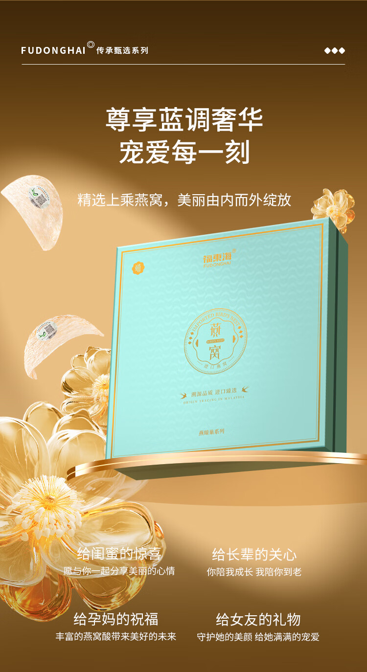 福东海 干燕窝50g【密盏8星】印尼进口干盏溯源送女孕妇营养过年货礼盒
