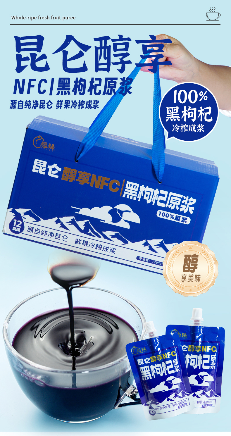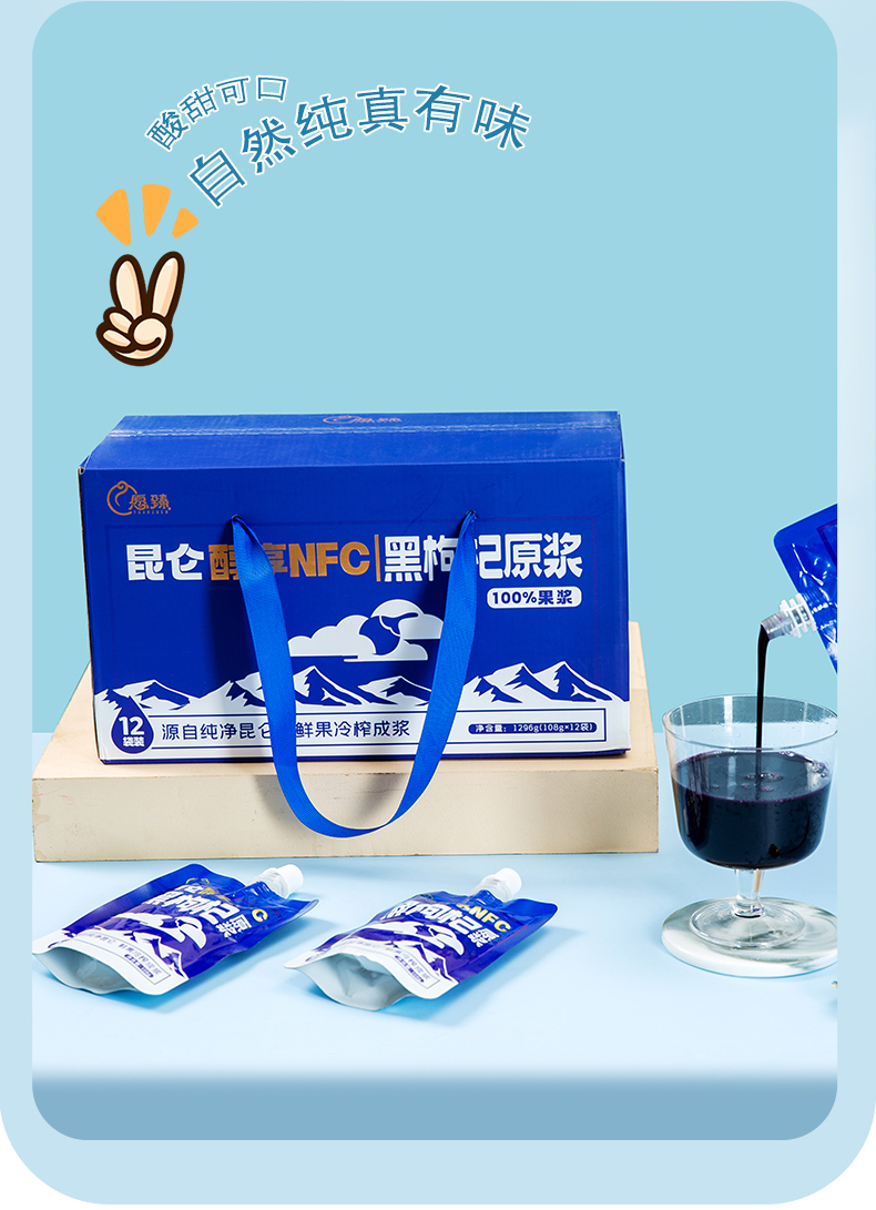 【全国包邮】新疆黑枸杞原浆(108g*12袋*1盒)